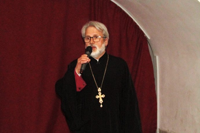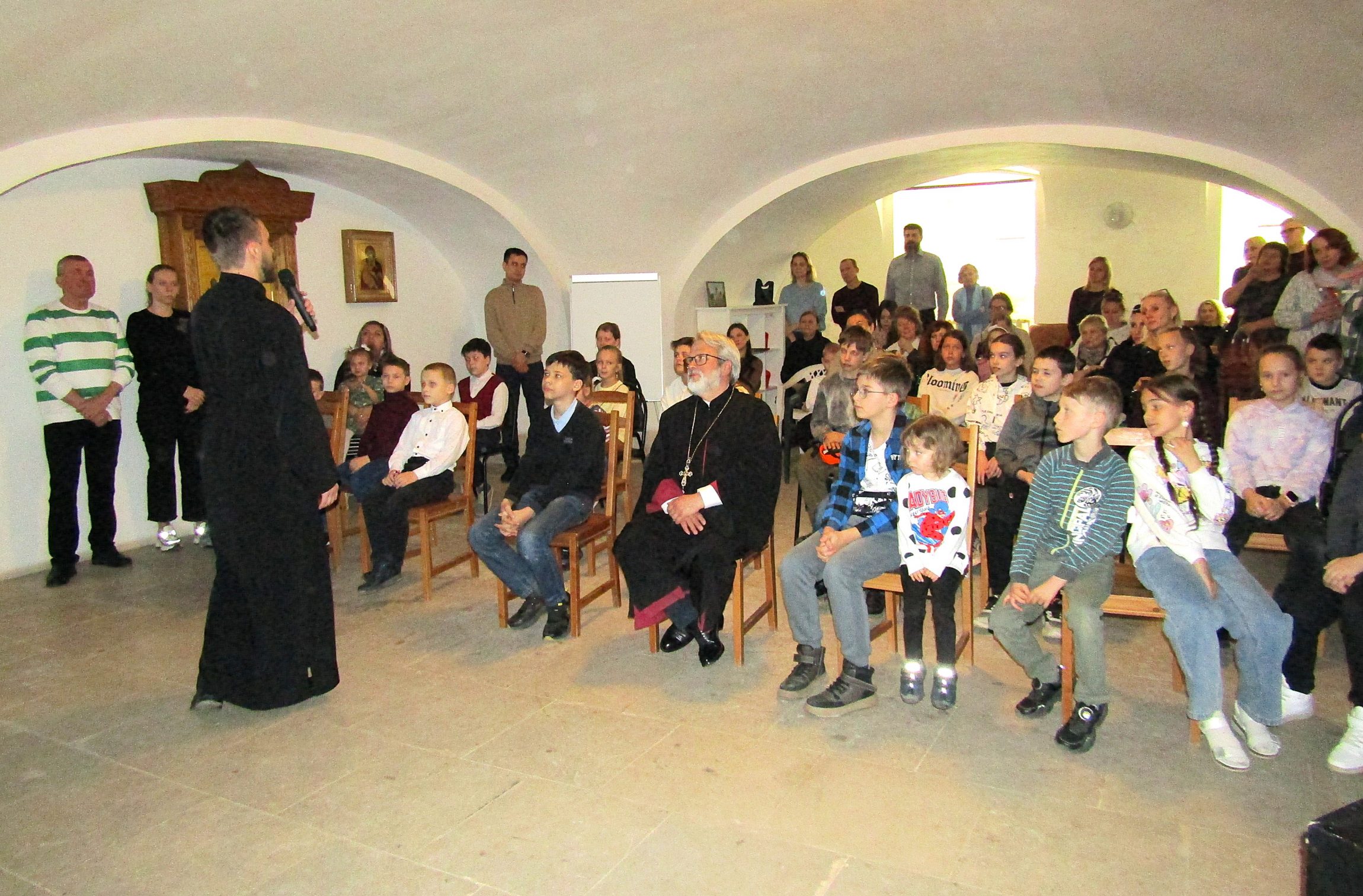 По доброй христианской традиции перед началом торжественного мероприятия собравшиеся соборно пропели Тропарь Пасхи, после чего с напутствием и поздравлениями к детям и взрослым обратился духовник воскресной школы и настоятель Успенского кафедрального собора протоиерей Сергий Резухин: «Дорогие братья и сестры! Дорогие наши дети, родители, педагоги! Все течет и изменяется, но неизменной остается наша радость в дни Святой Пасхи. Это радость особая, радость о Воскресении: Господь Воскрес из мертвых и даровал каждому человеку способность и возможность жизни вечной, открыл новый духовный закон всеобщего воскресения.