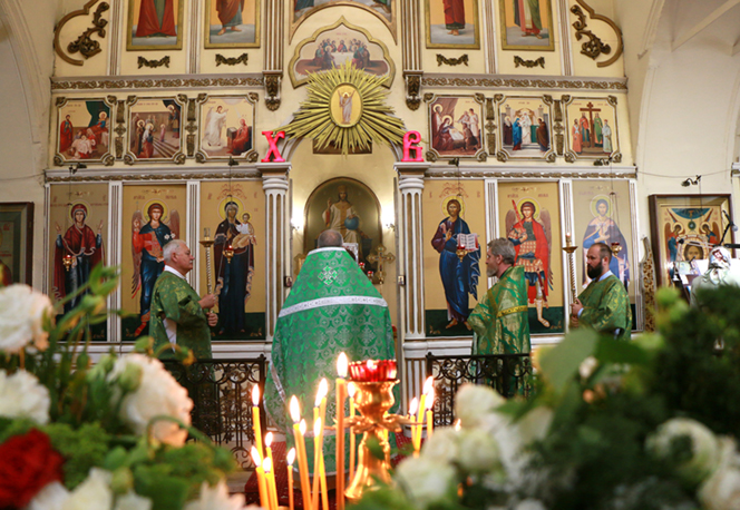 Во время Литургии звучала молитва об упокоении душ героев Великой Отечественной войны. Вот уже на протяжении 22 лет в храме воздают дань памяти кавалерам, награжденным орденом Александра Невского.