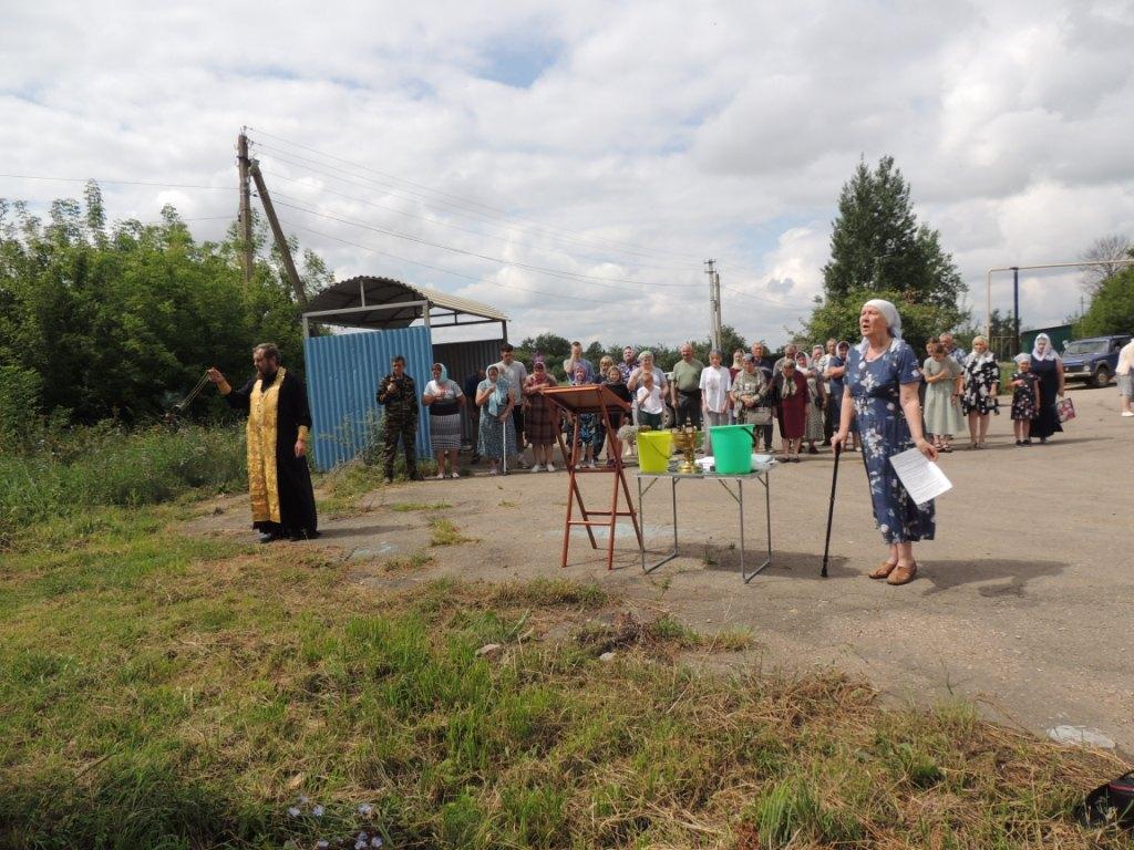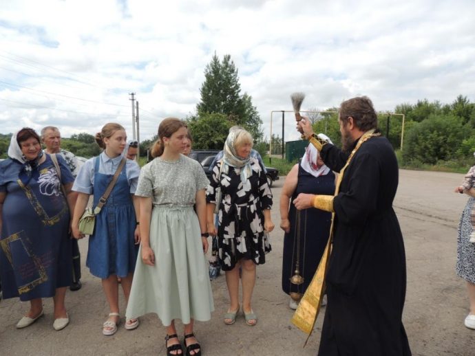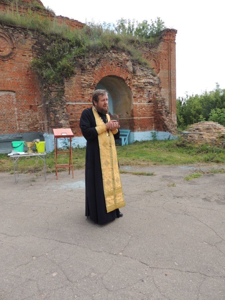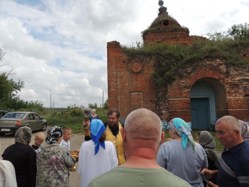 В селе Ушаково Ефремовского района возле полуразрушенного храма был совершен молебен.