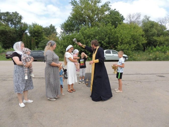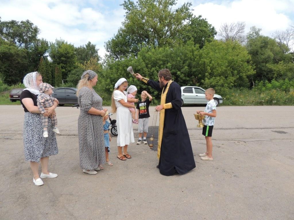 По окончании молебна батюшка окропил верующих святой водой.