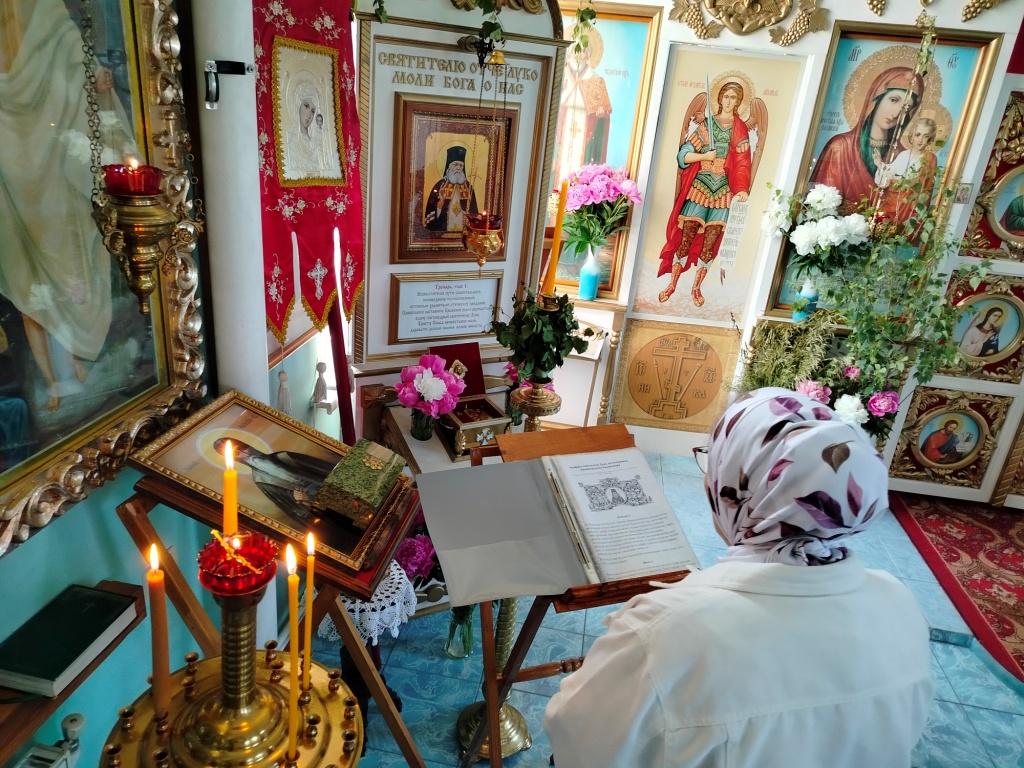 В престольный день богослужение началось с чтения акафиста святителю Луке и молебна с чином малого освящения воды.