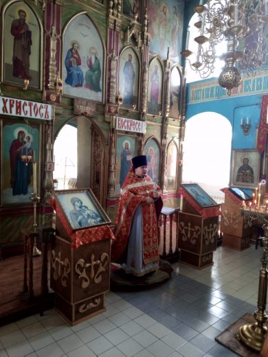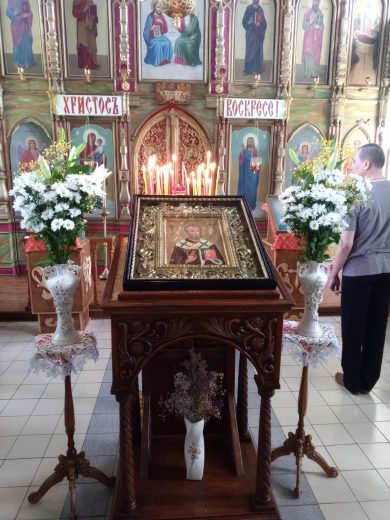 Утром перед иконой угодника Божьего певчие пропели акафист. Иерей Павел Зубков, настоятель Никольского храма, совершил водосвятный молебен и Божественную литургию. Многие верующие исповедовались и причастились святых Христовых Таин. Во время службы священник молился о мире и здравии всех православных христиан и о скорейшем завершении специальной военной операции.