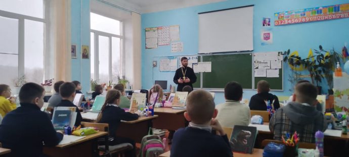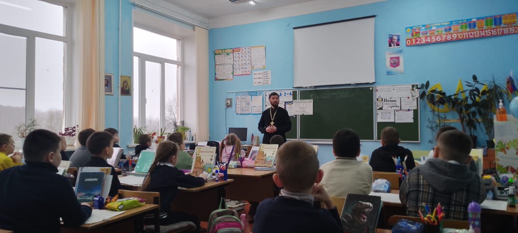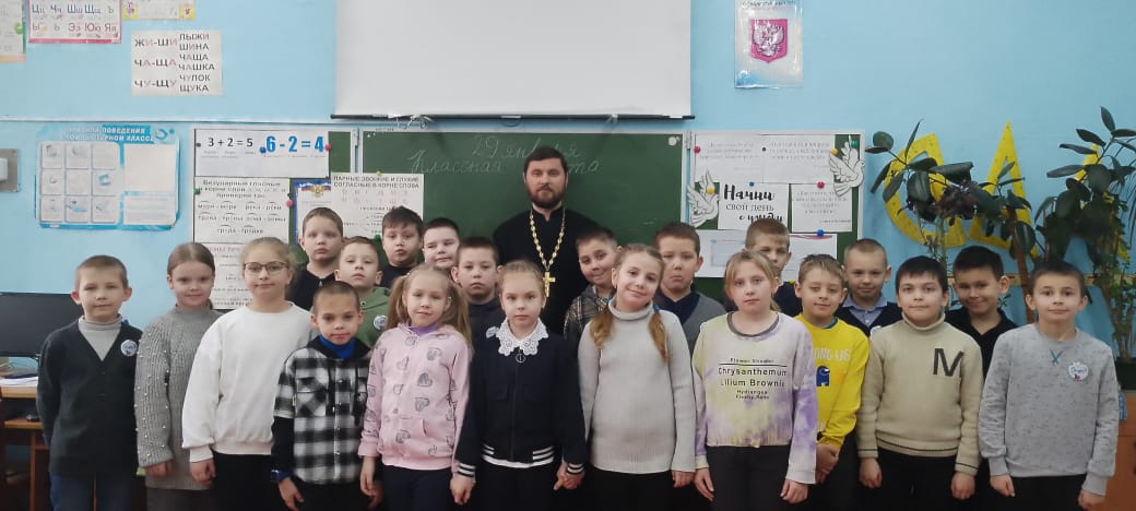 Помощник настоятеля по работе с молодежью Свято-Казанского храма города Богородицка иерей Ярослав Сопига провел встречу со школьниками 2 класса МОУСШ №1.
