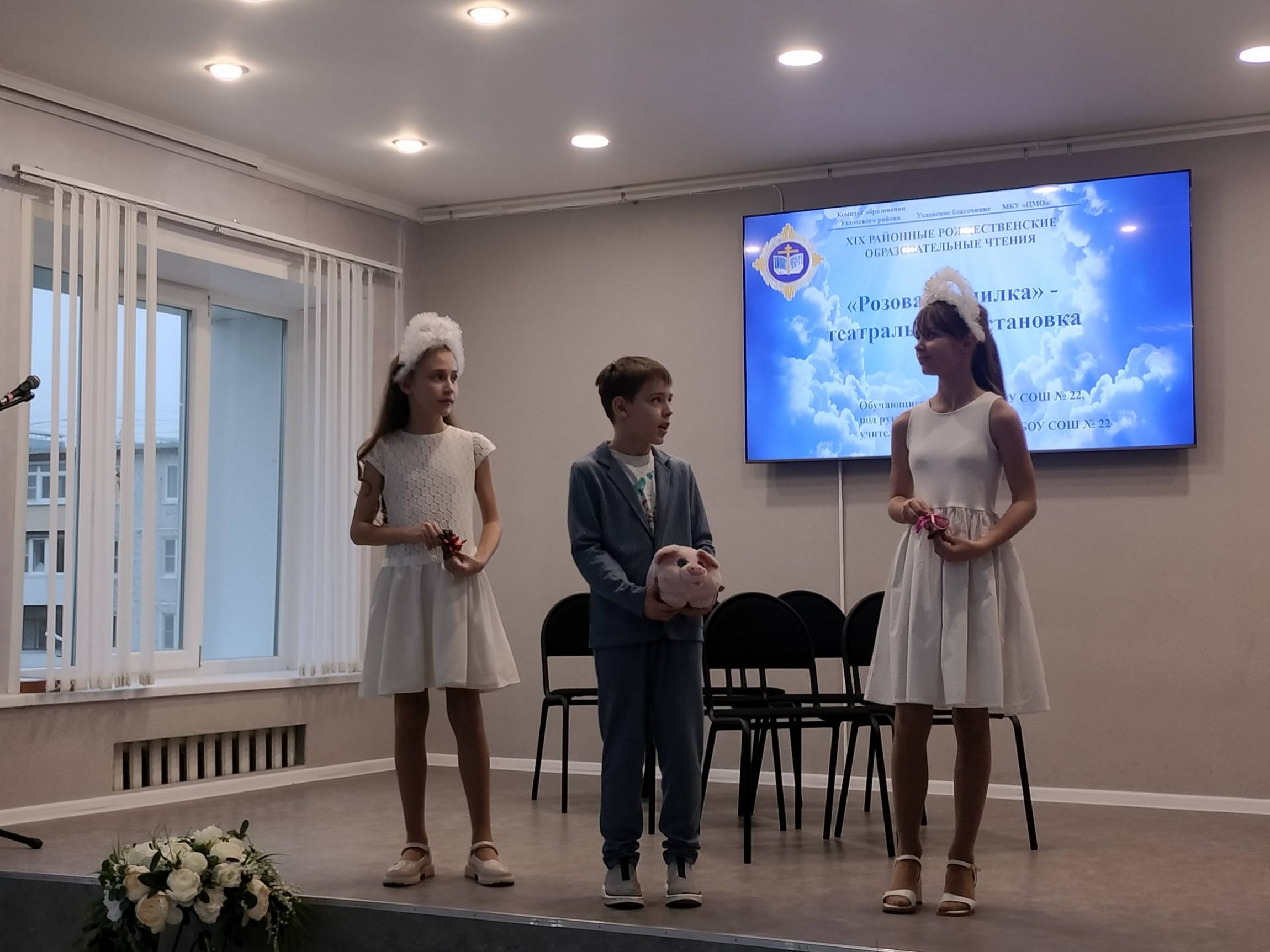 Обучающиеся 4 класса школы №22 под руководством учителя начальных классов Татьяны Николаевны Бебко показали театральную постановку «Розовая копилка». Ребята рассказали историю о том, как у мальчика перед светлым праздником Рождества Христова проснулась совесть.