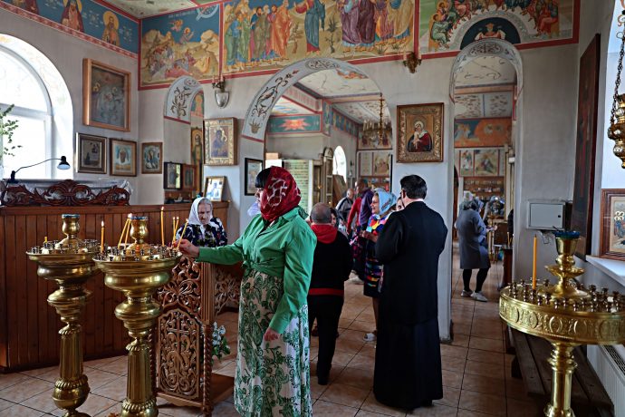 За свечным ящиком гостям дали свечей, которые они поставили на подсвечники и затеплили их перед святыми иконами.