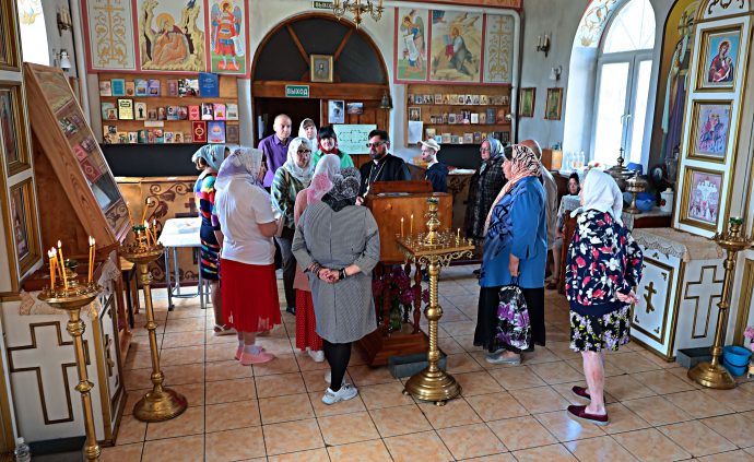 Левинский приход очень молодой, ему всего четверть века, но и за это малое время, в жизни прихода случилось много важных и интересных событий. Так, в прошлом году в храм из реставрации вернулся образ Божией Матери «Избавительница». Об истории обретения этого удивительного образа батюшка тоже рассказал гостям и пригласил их на богослужение, ради этого образа Пресвятой Богородицы. Отец Сергий сказал: «Надеюсь, что Господь сподобит нам всем вместе вознести молитву к Царице Небесной в день прославления образа Ее «Избавительница».
