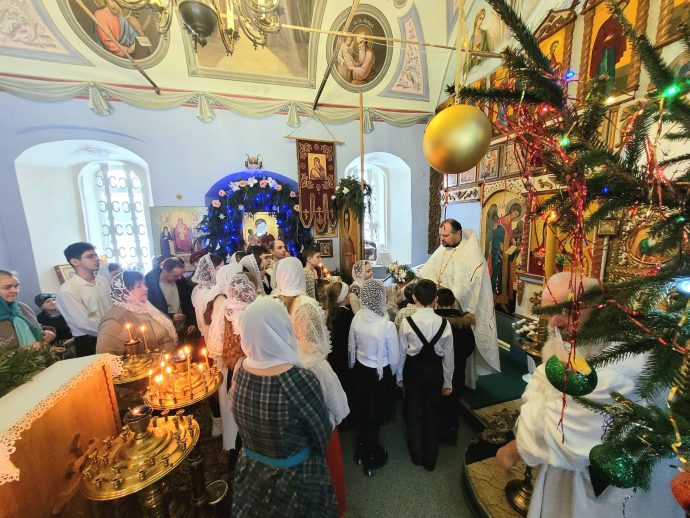 7 января Божественную литургию совершил настоятель храма иерей Димитрий Броновицкий. По доброй традиции богослужебные песнопения исполнял детско-юношеский хор «Серафим» под руководством регента Юлии Броновицкой. В праздничный день воспитанники воскресной школы приступили к таинству Причастия.
