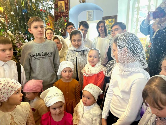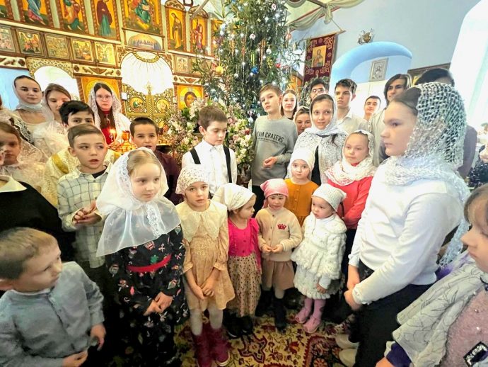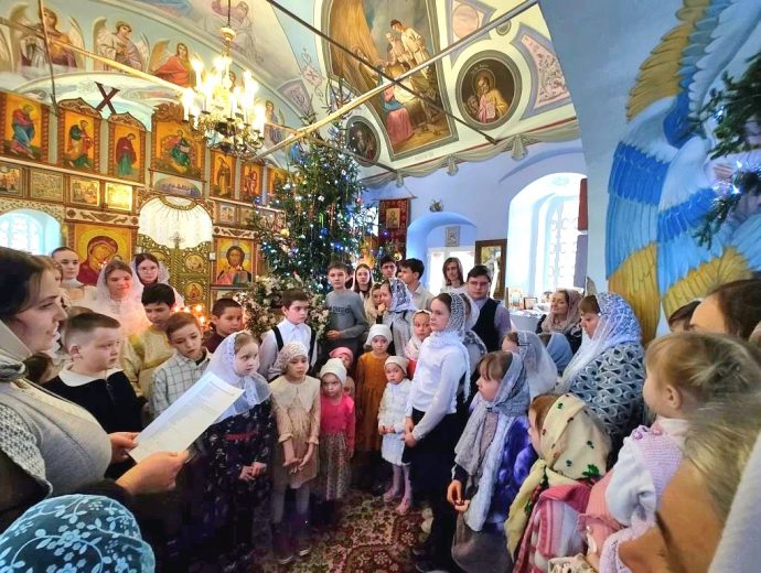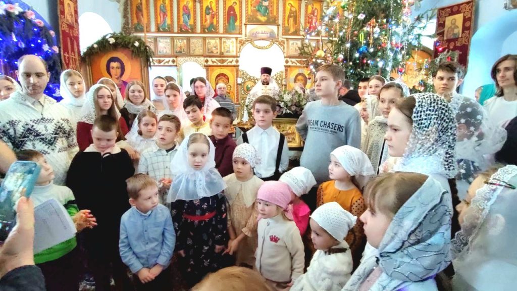 По окончании Божественной литургии дети вместе со своими преподавателями поздравили прихожан храма со светлым праздником Рождества Христова. Ребята читали стихотворения, исполняли колядки, в которых прославляли события Рождества Спасителя.