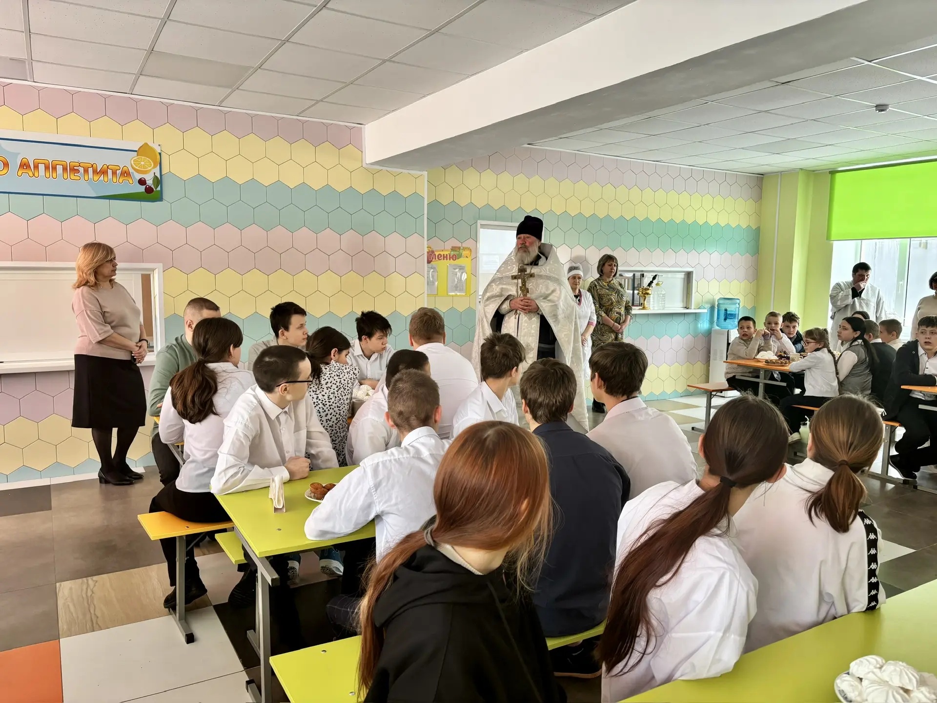 Протоиерей Анатолий рассказал о празднике Богоявления, а дети радостно включились в беседу и отвечали на вопросы. Священник напутствовал всех добрыми пожеланиями следовать заповедям Божиим. В свою очередь дети вместе с учителями подготовили небольшое выступление с чтением стихов, посвящённых празднику.