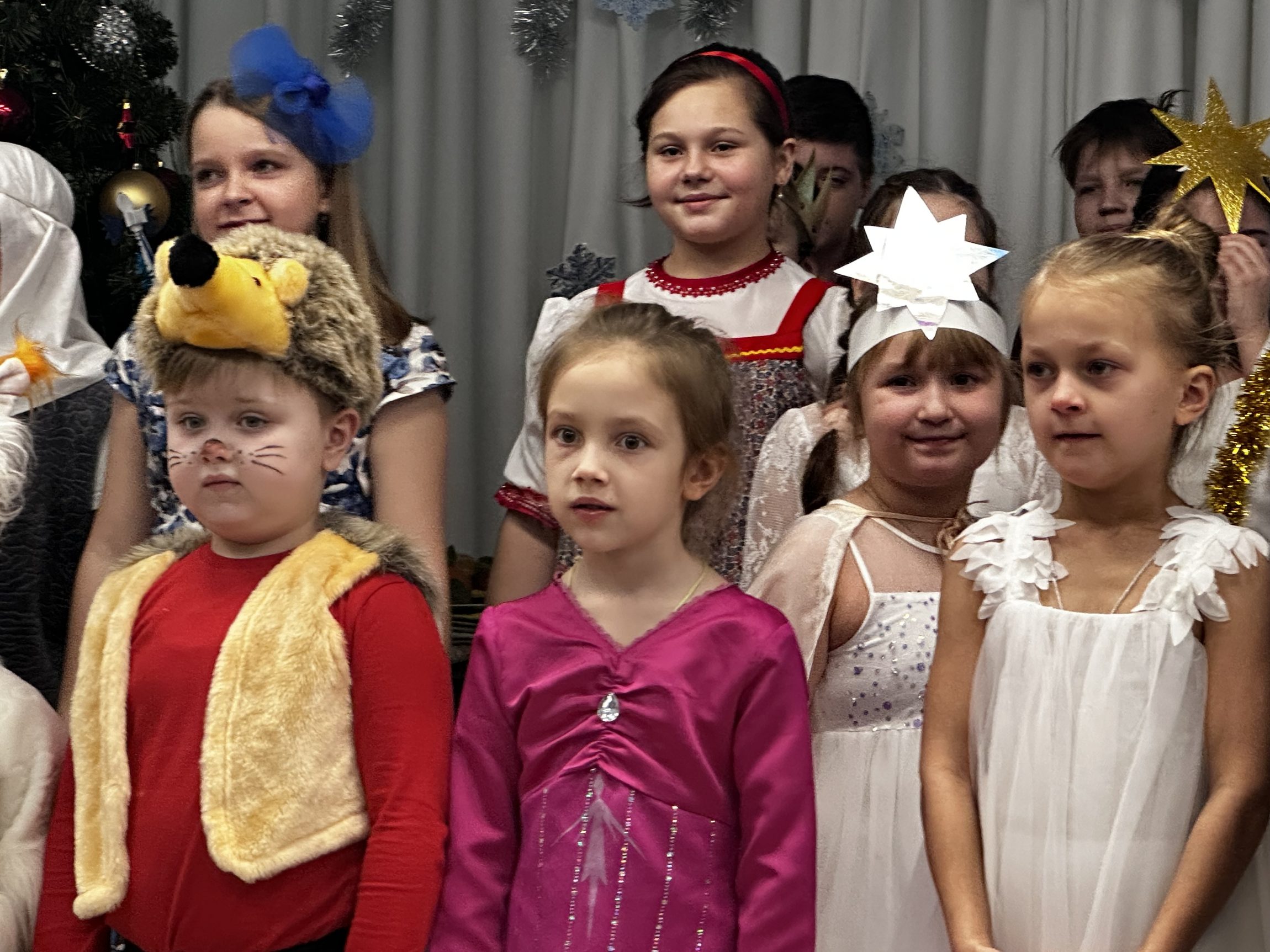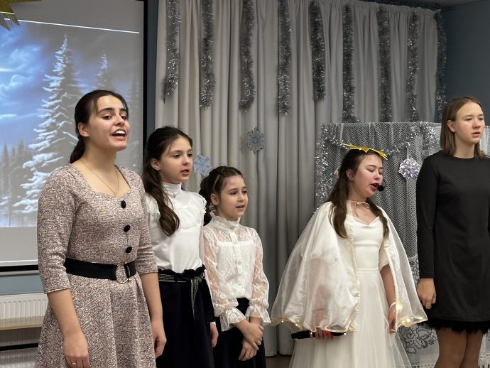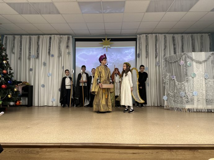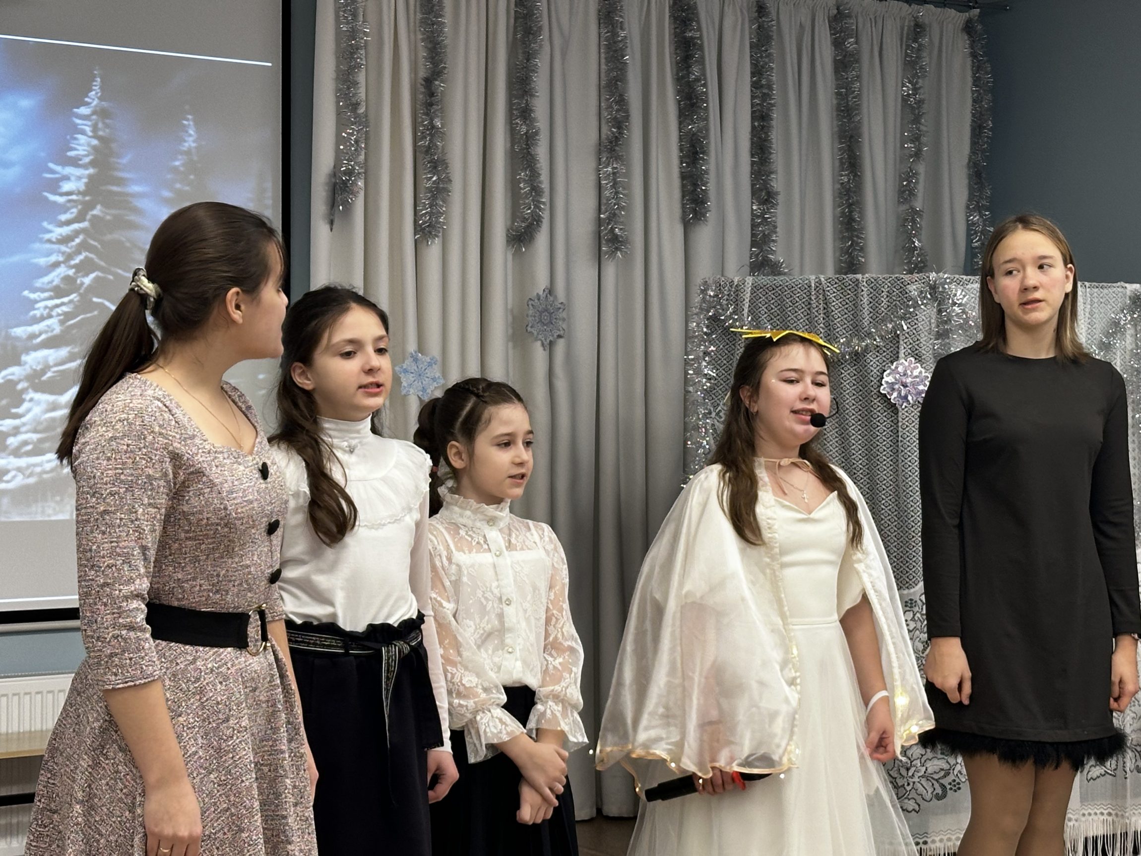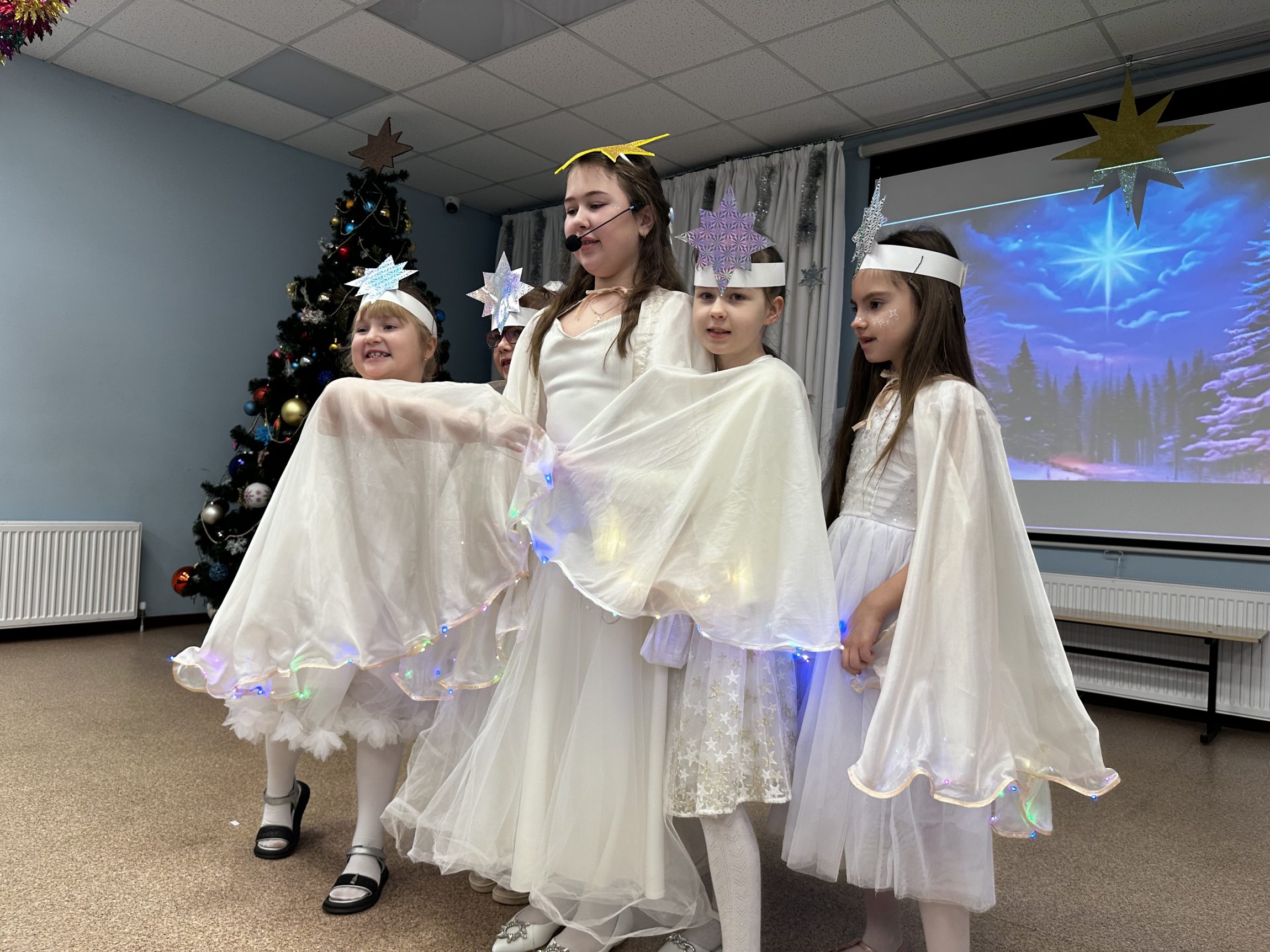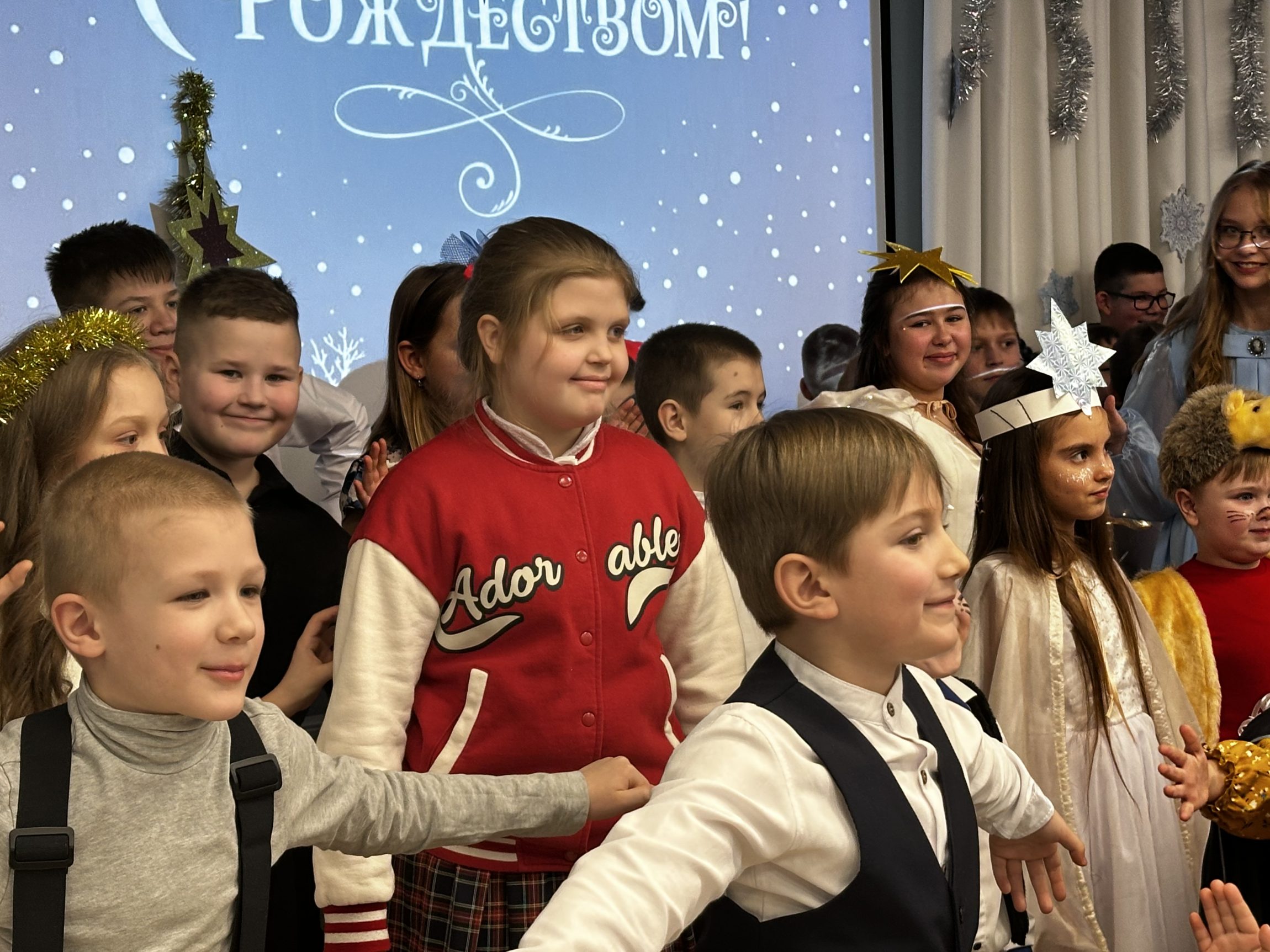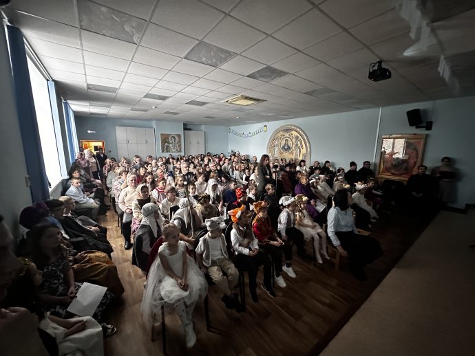 В актовом зале воскресной школы храма святого великомученика Димитрия Солунского прошел рождественский концерт, посвященный празднику Рождества.