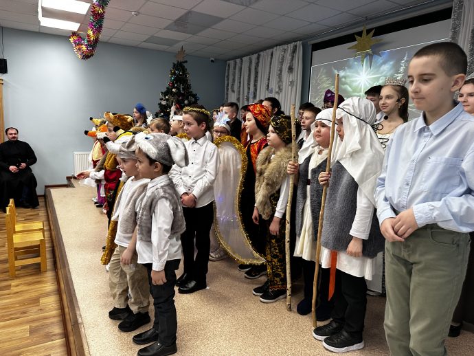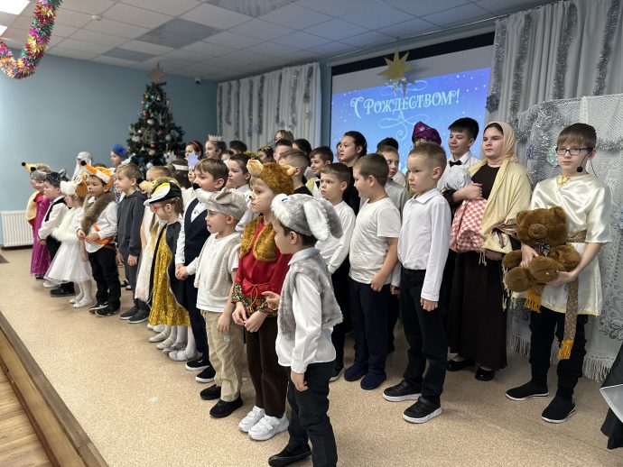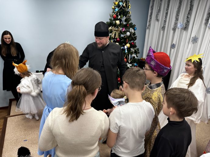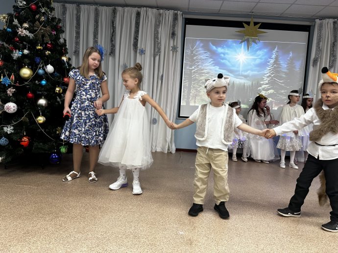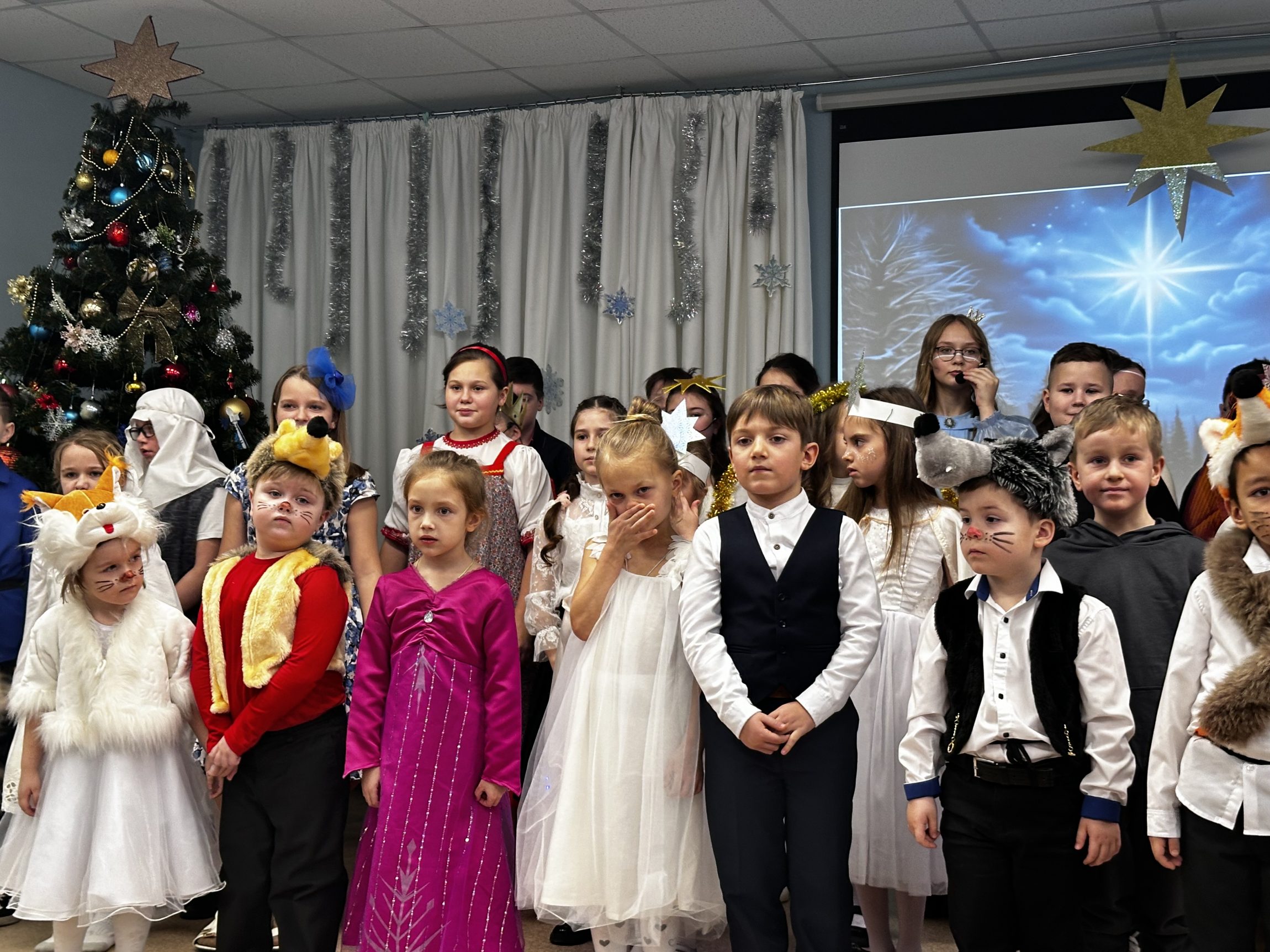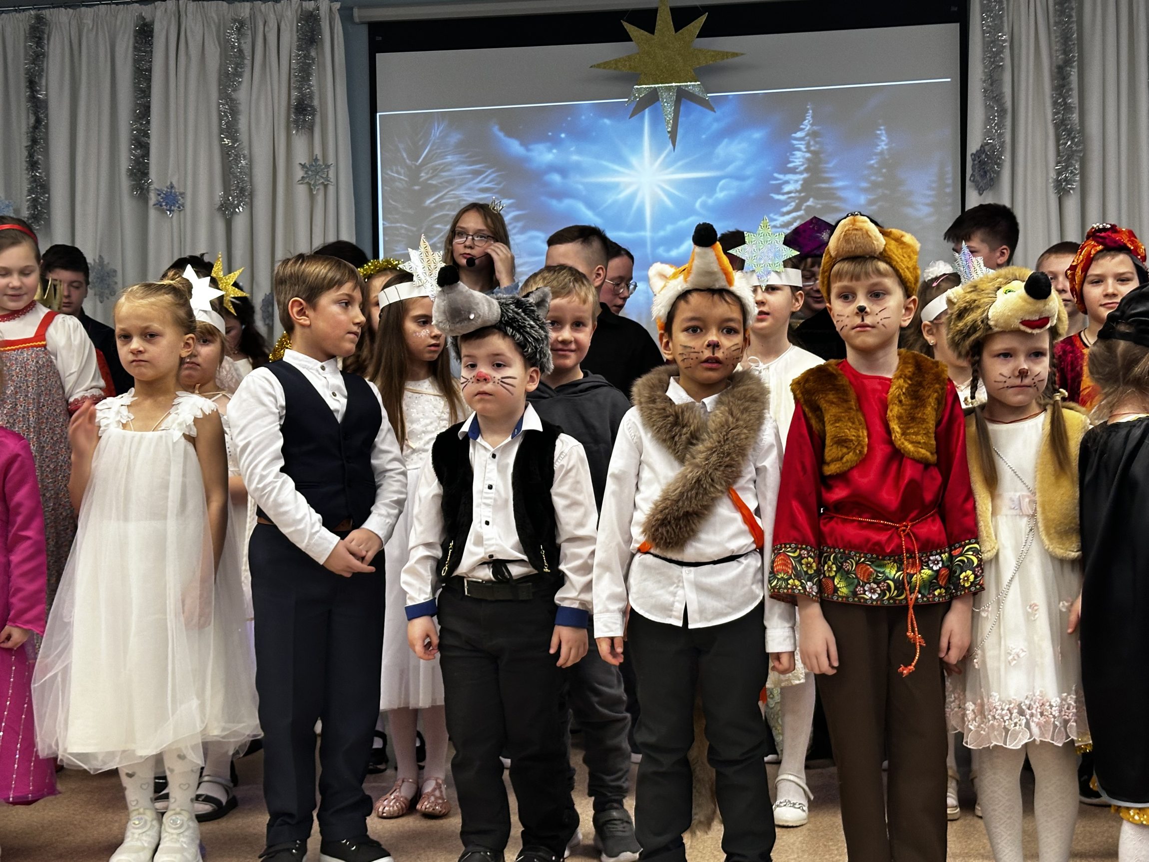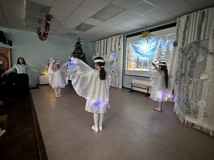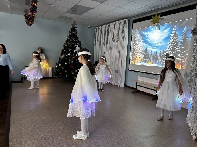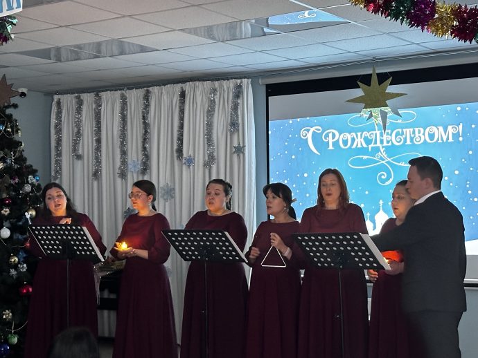 В актовом зале воскресной школы храма святого великомученика Димитрия Солунского прошел рождественский концерт, посвященный празднику Рождества.