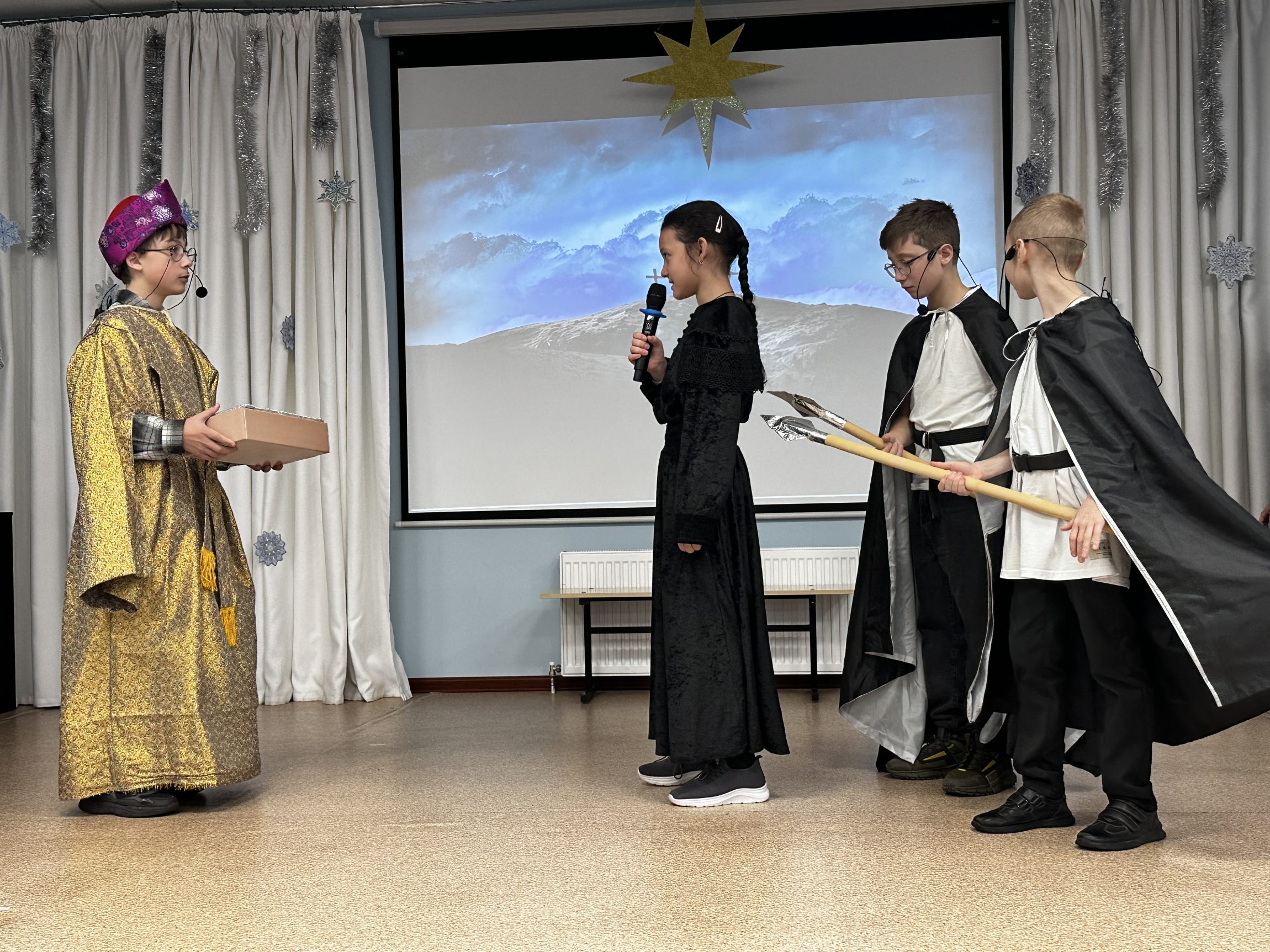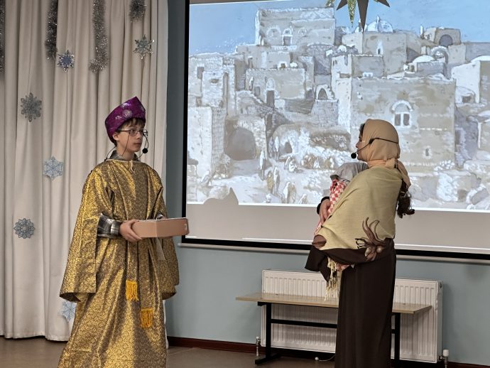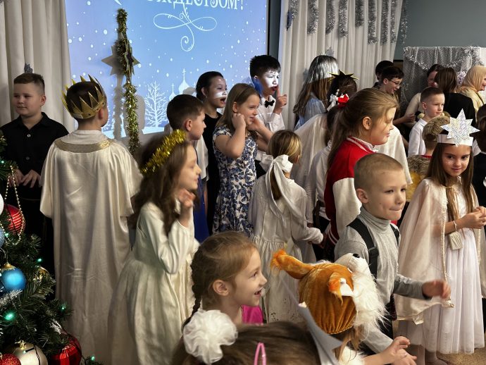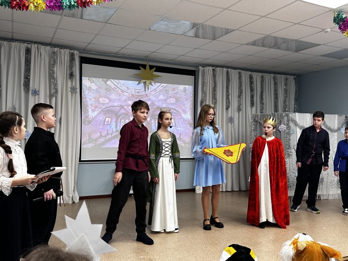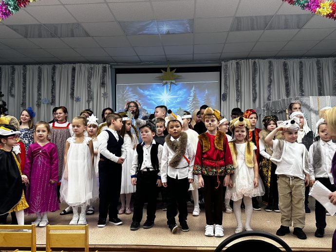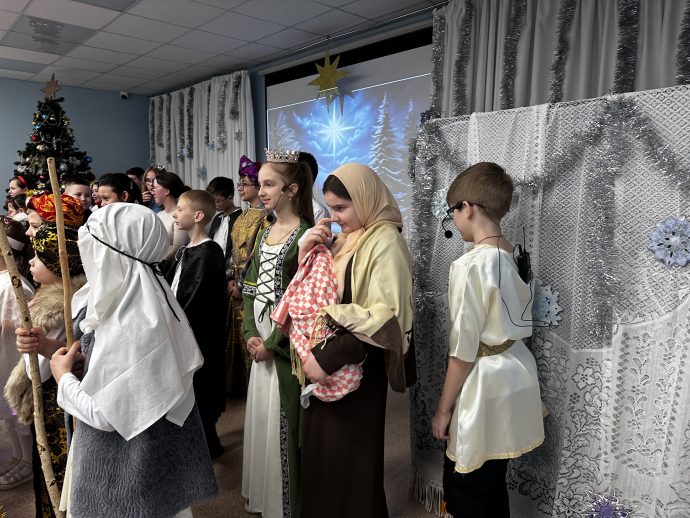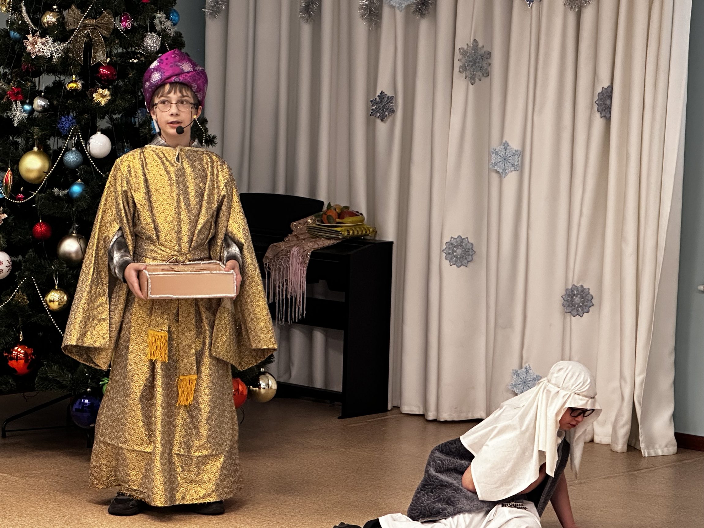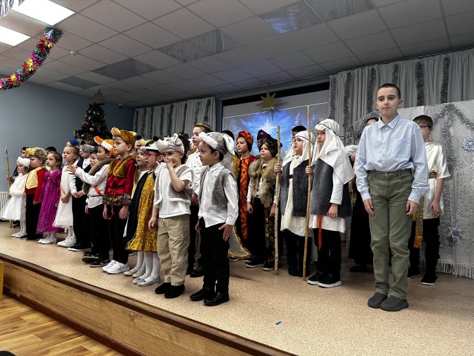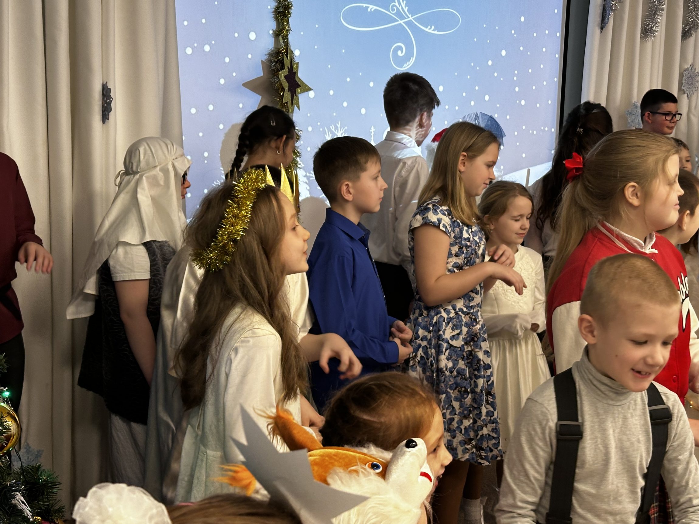 В актовом зале воскресной школы храма святого великомученика Димитрия Солунского прошел рождественский концерт, посвященный празднику Рождества.