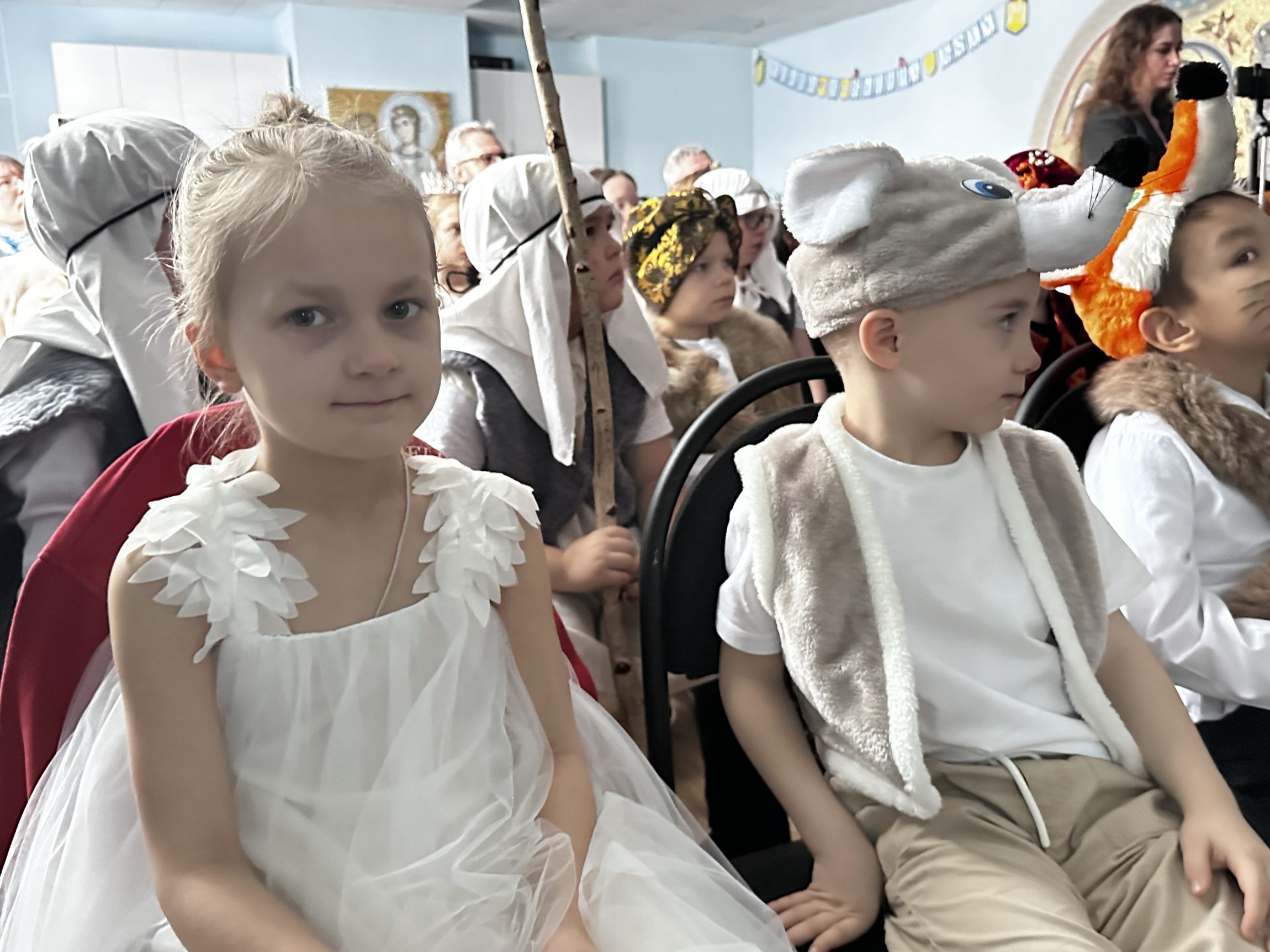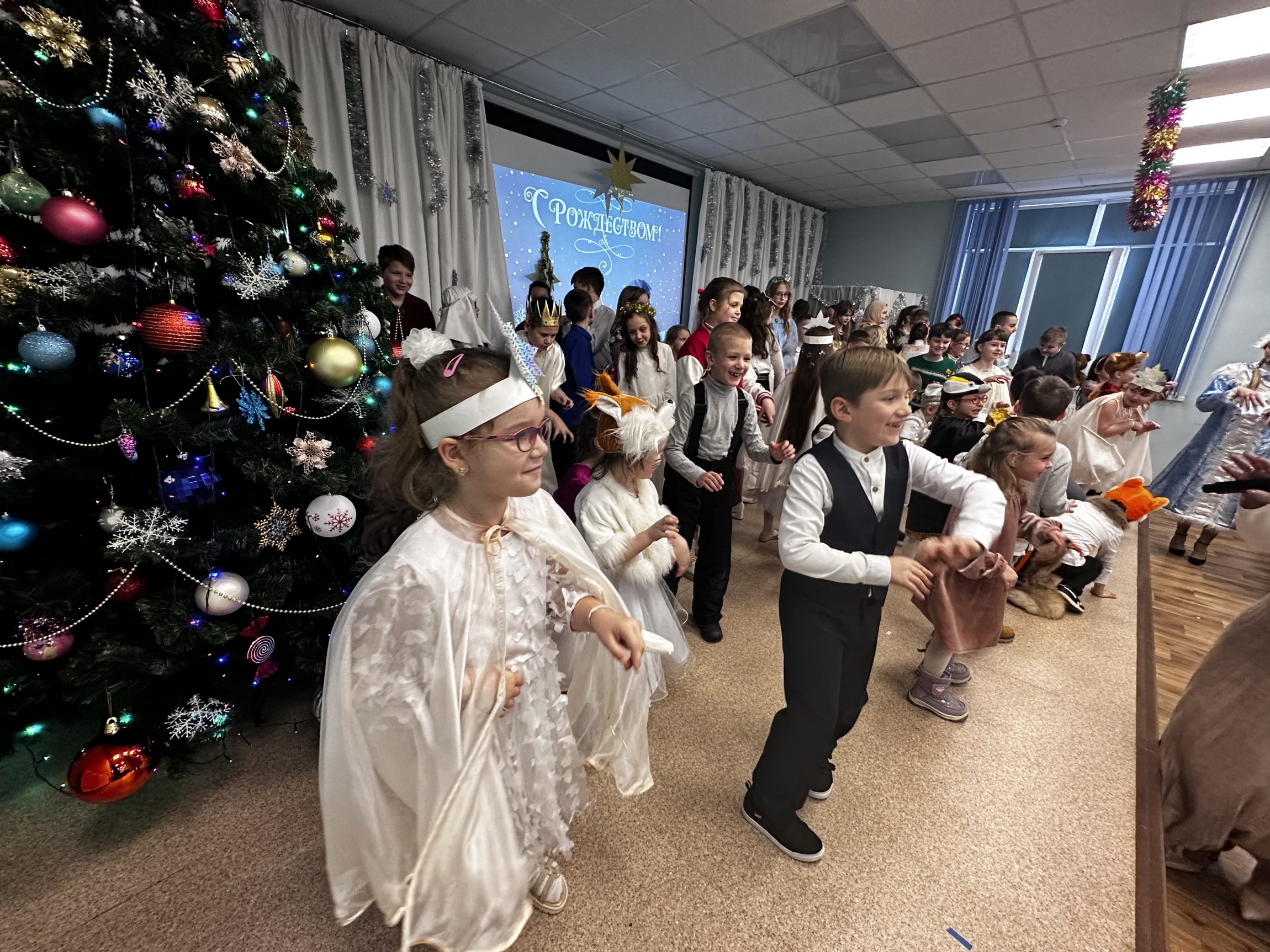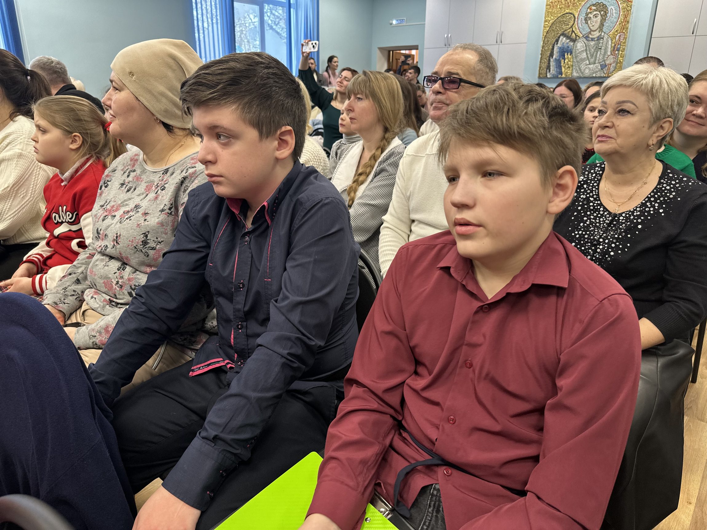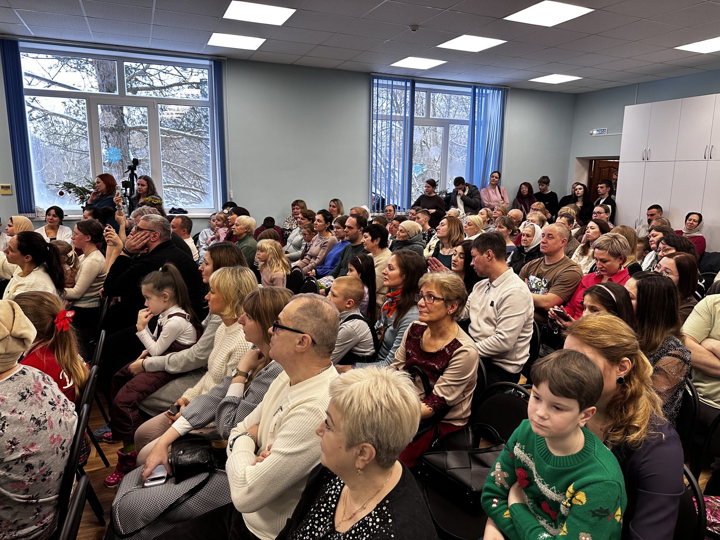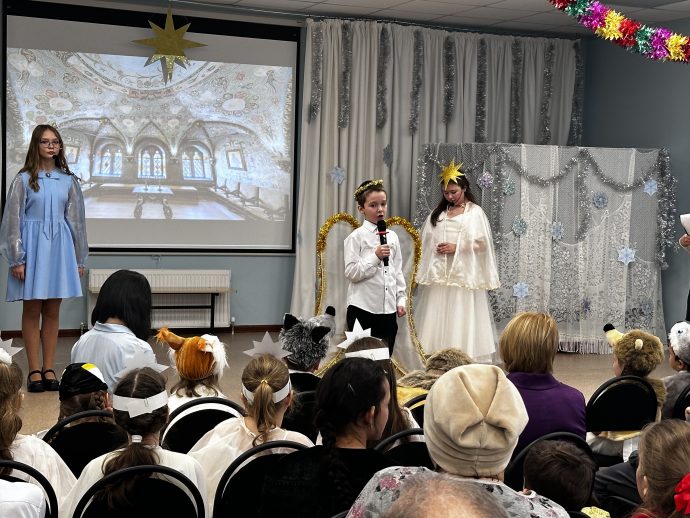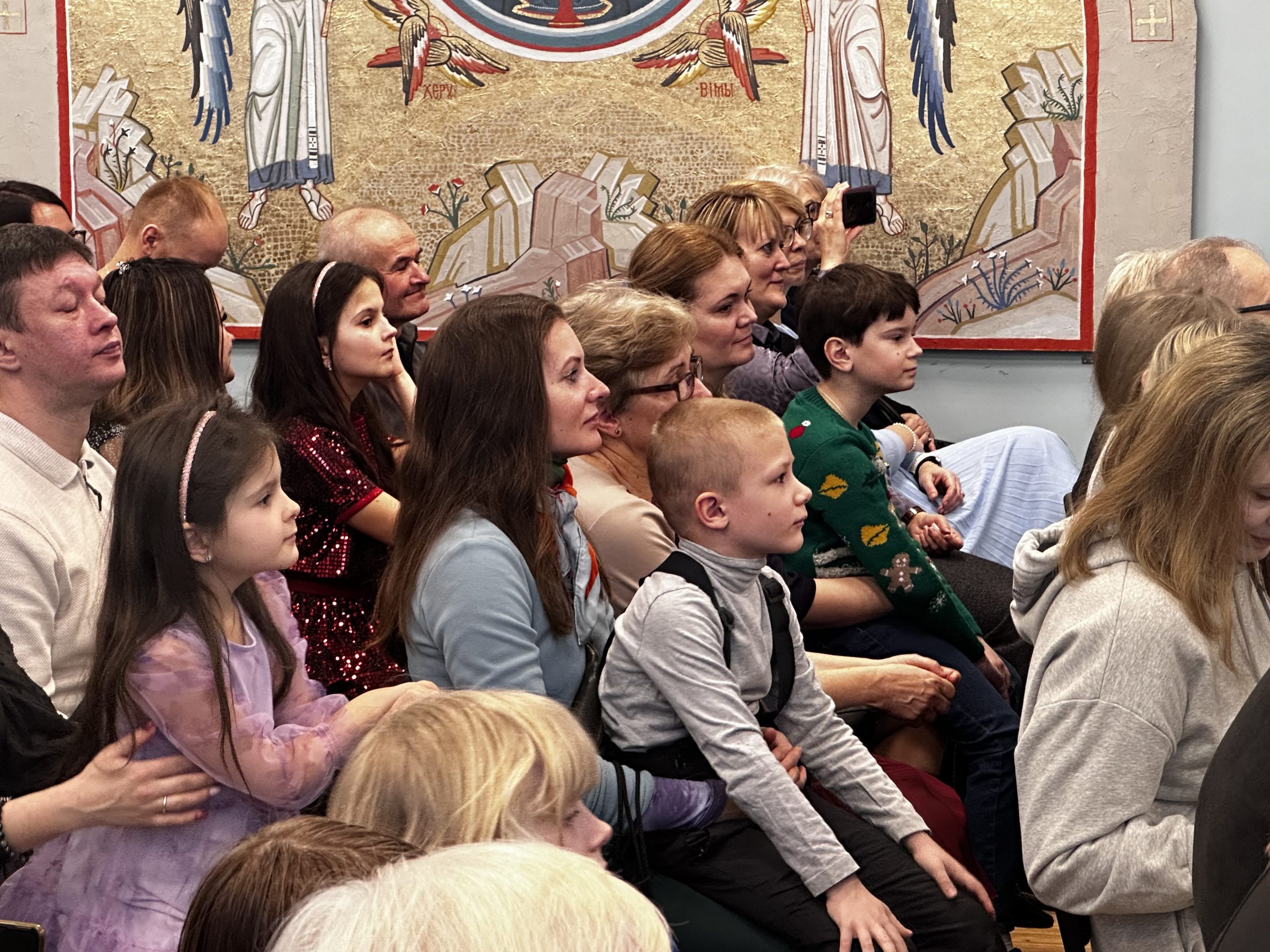 В актовом зале прихода храма святого великомученика Димитрия Солунского в рождественские дни собрались не только родители учащихся воскресной школы, но и самые юные ее воспитанники и прихожане.