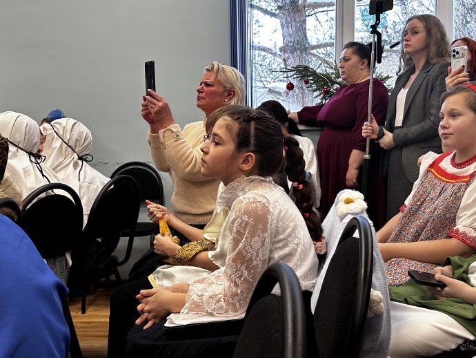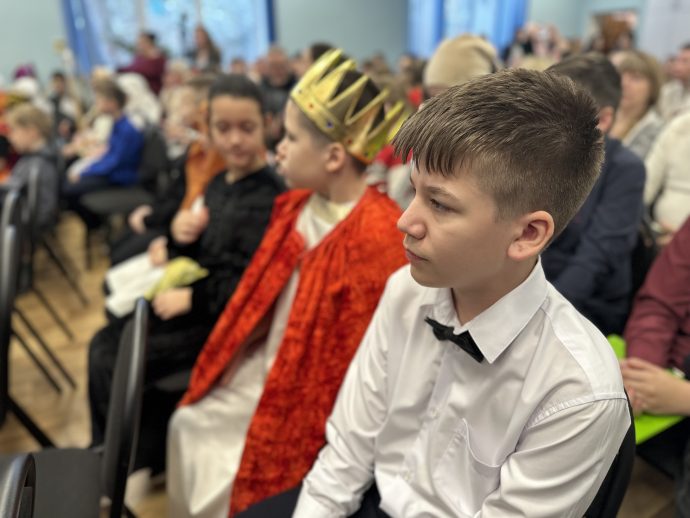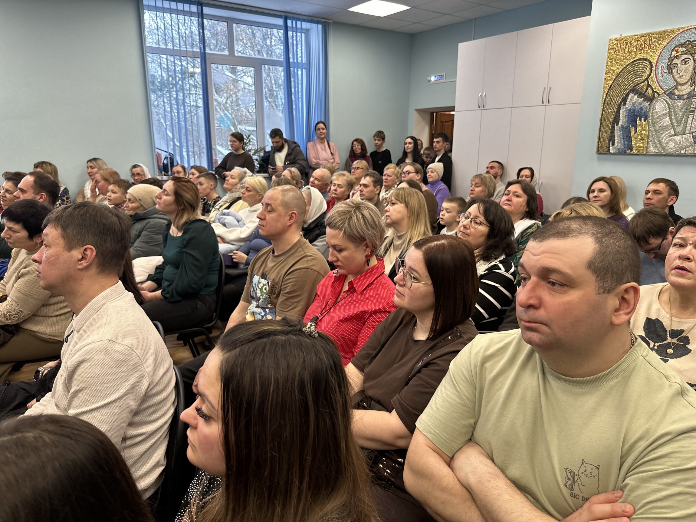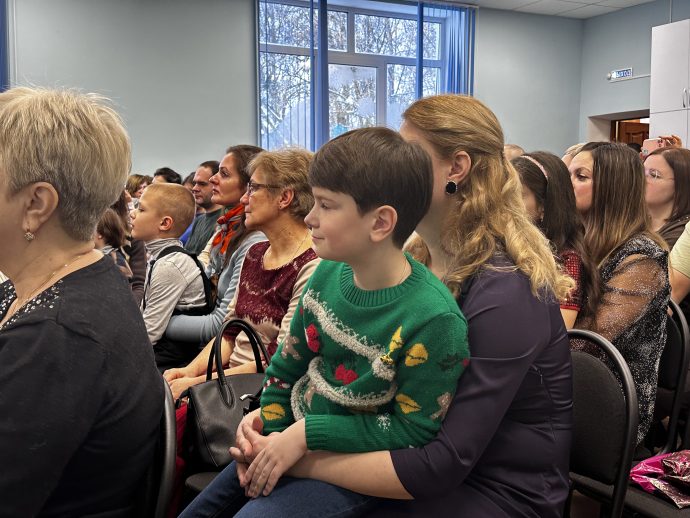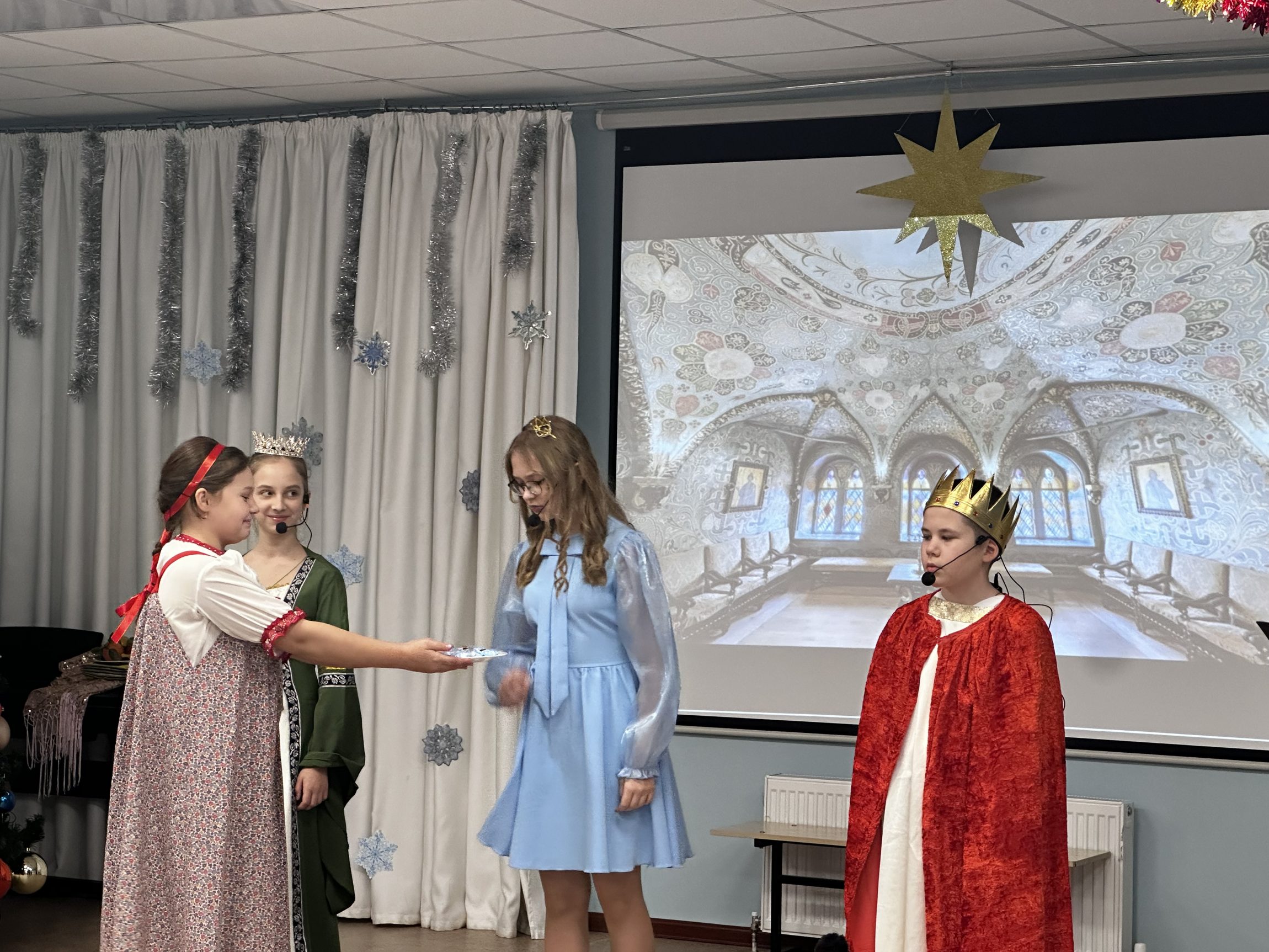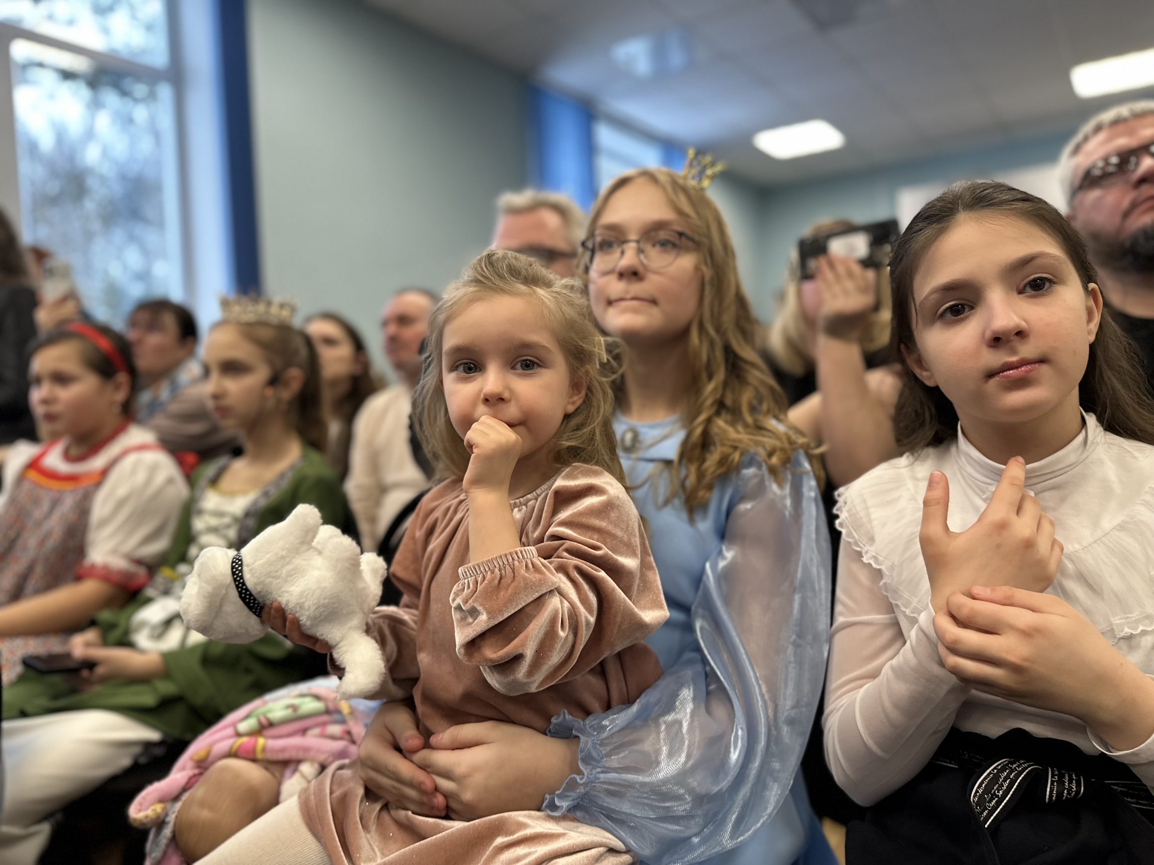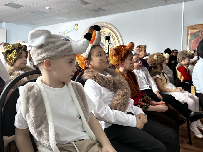 В актовом зале прихода храма святого великомученика Димитрия Солунского в рождественские дни собрались не только родители учащихся воскресной школы, но и самые юные ее воспитанники и прихожане.