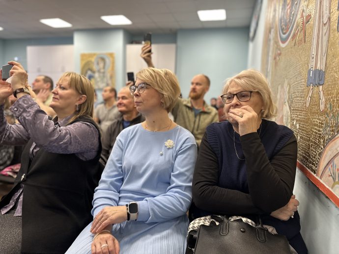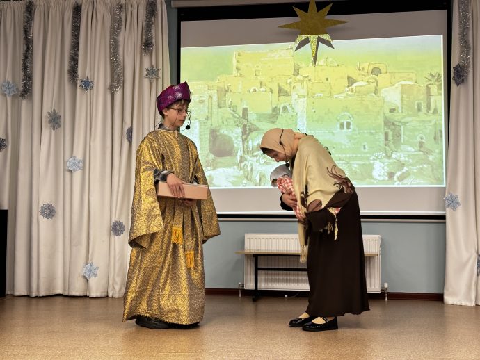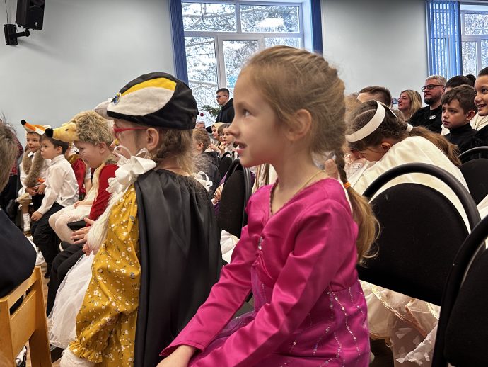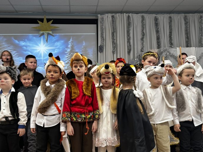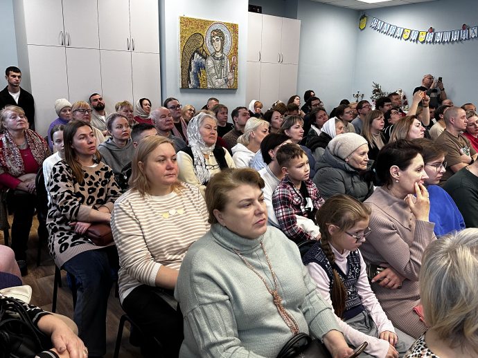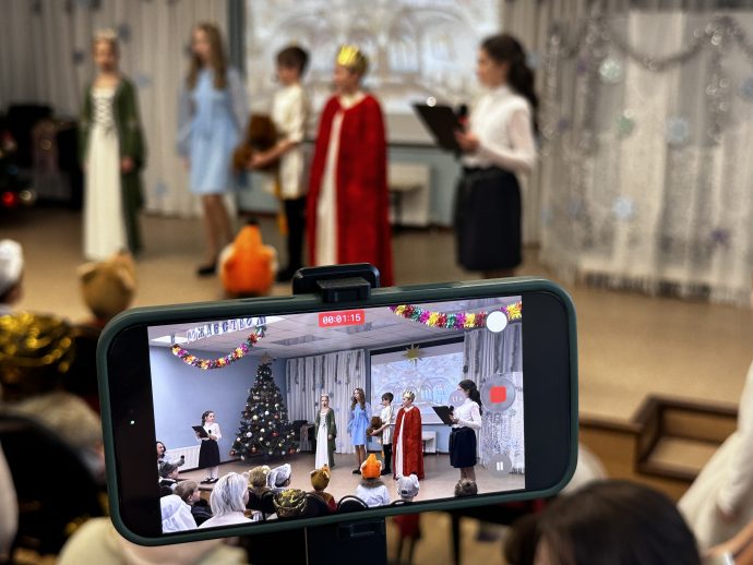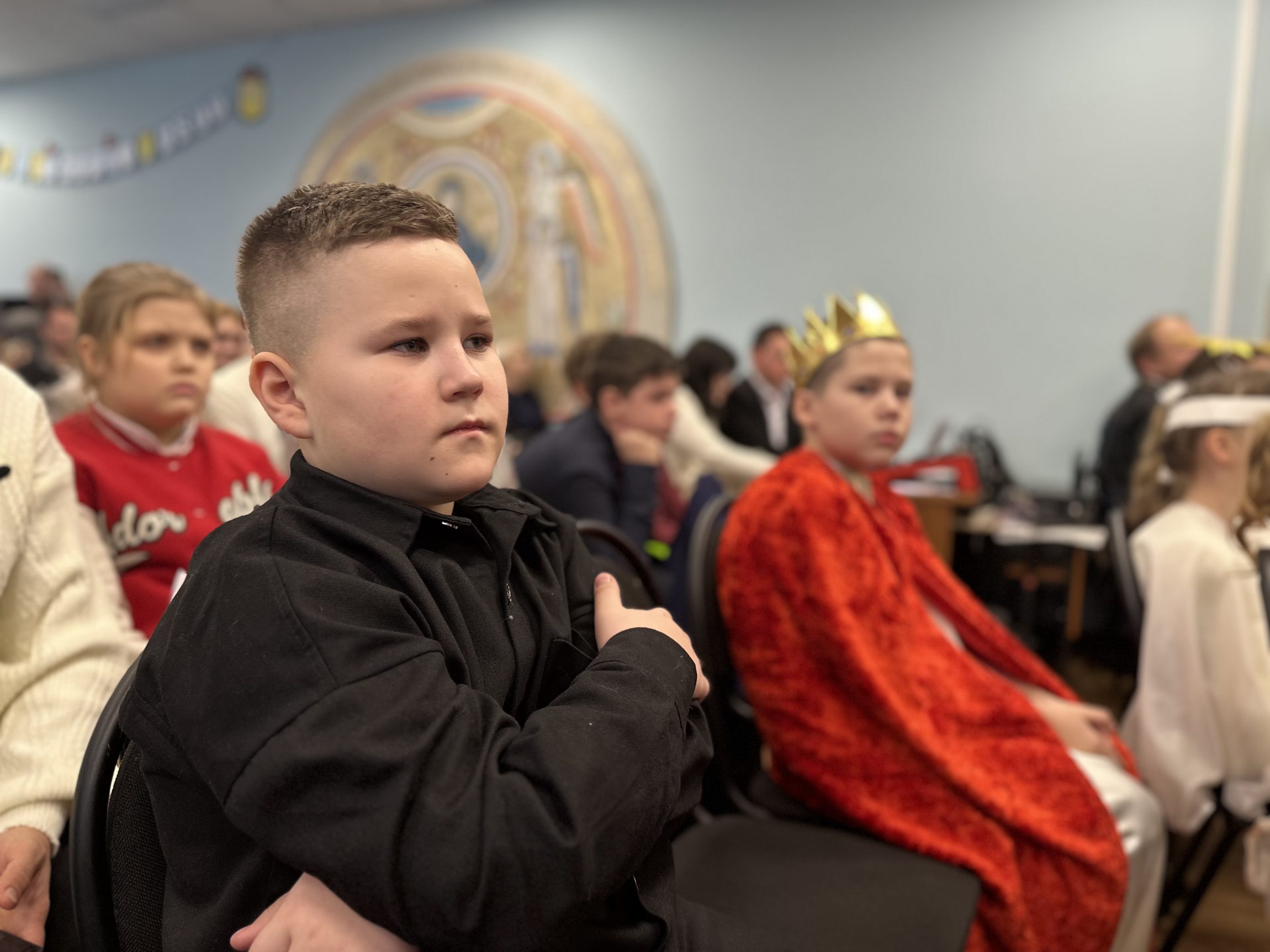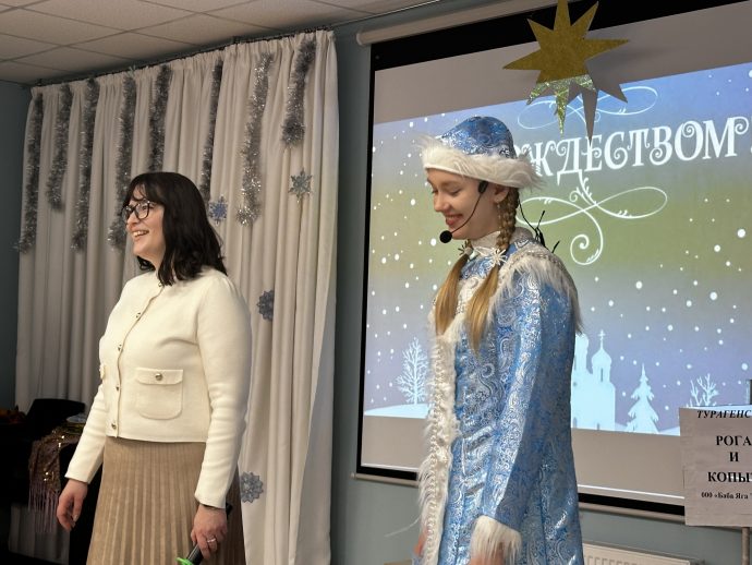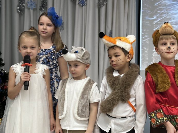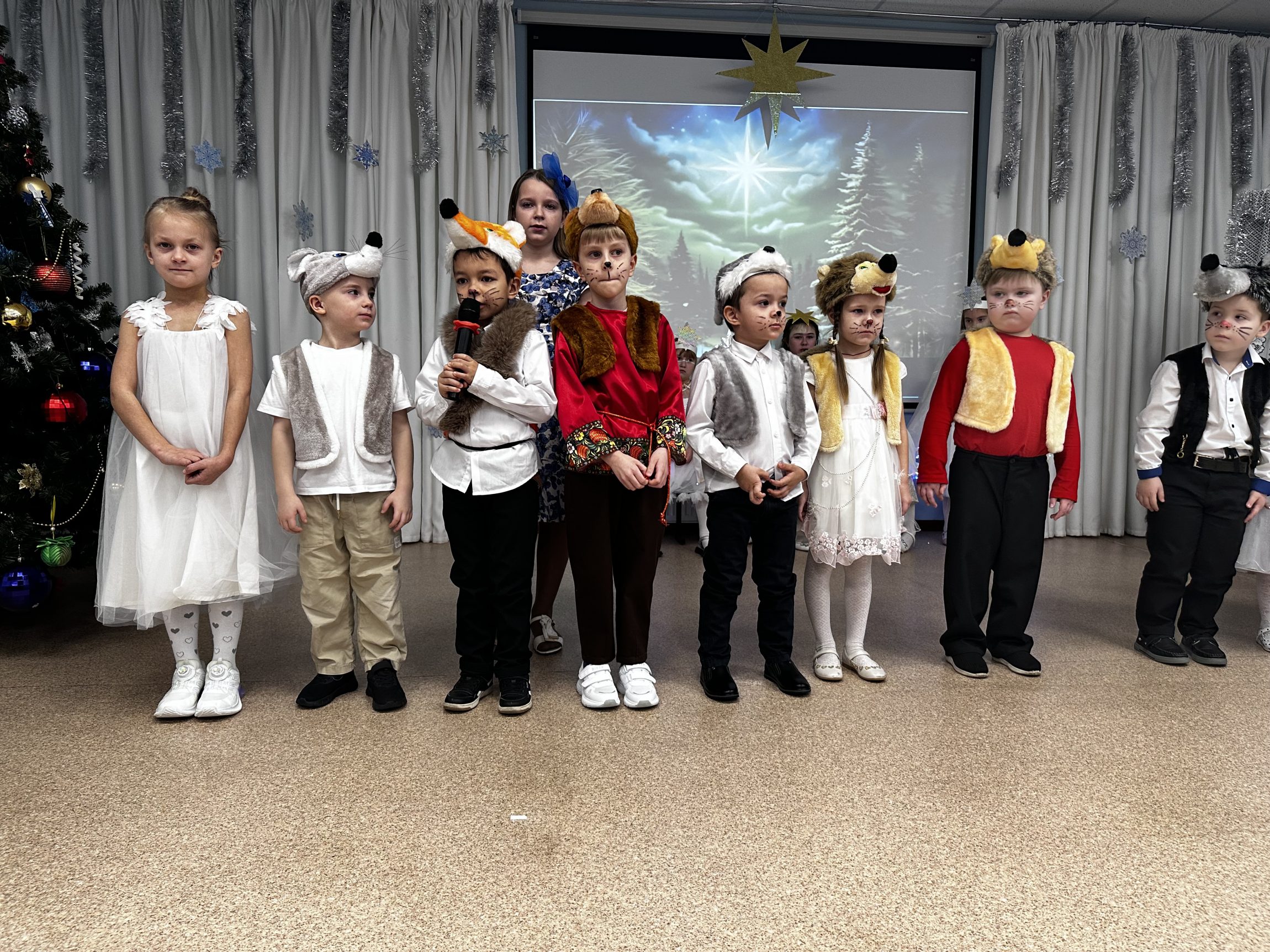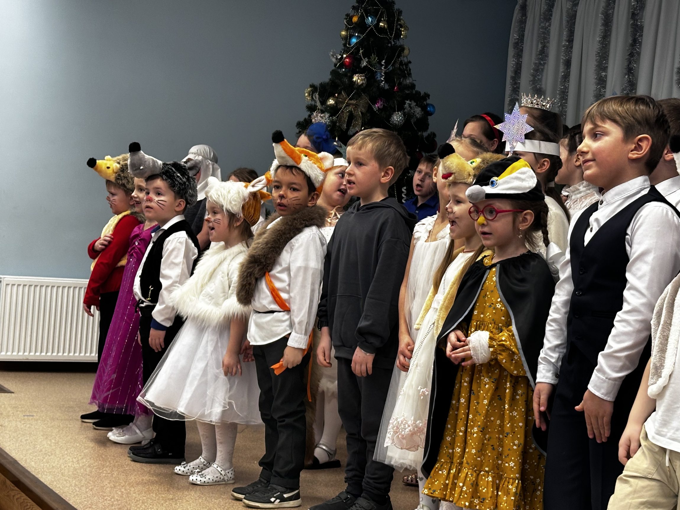 В актовом зале прихода храма святого великомученика Димитрия Солунского в рождественские дни собрались не только родители учащихся воскресной школы, но и самые юные ее воспитанники и прихожане.