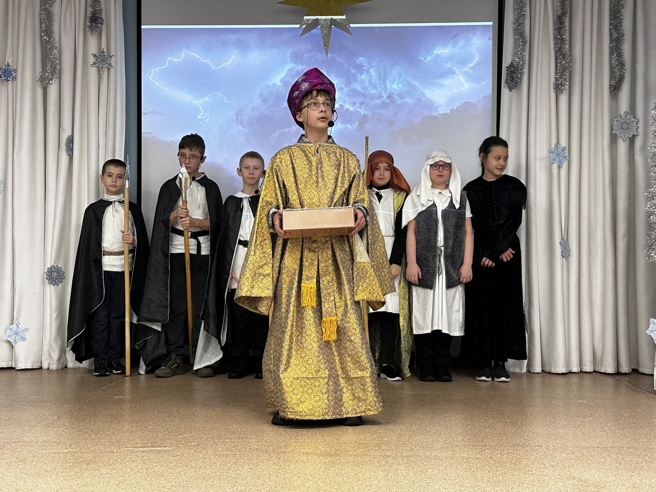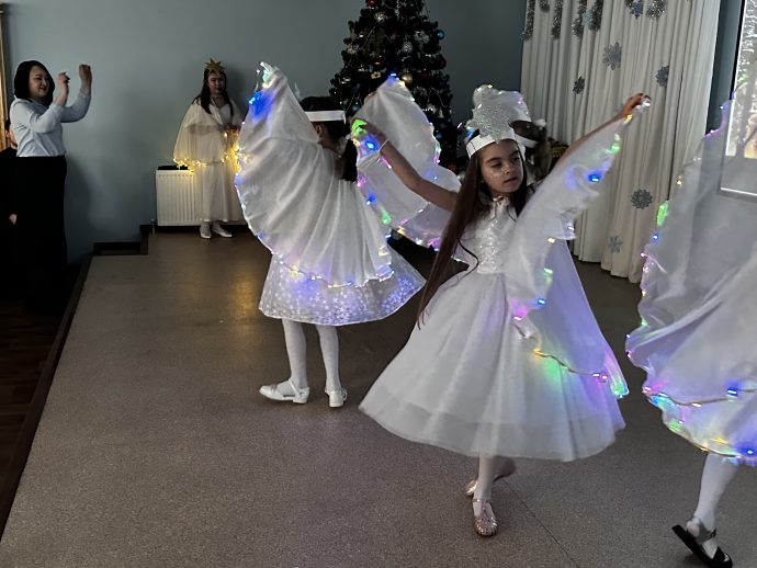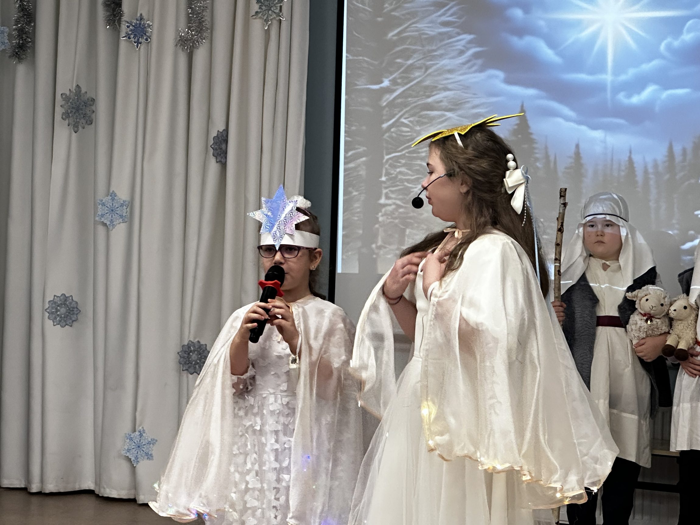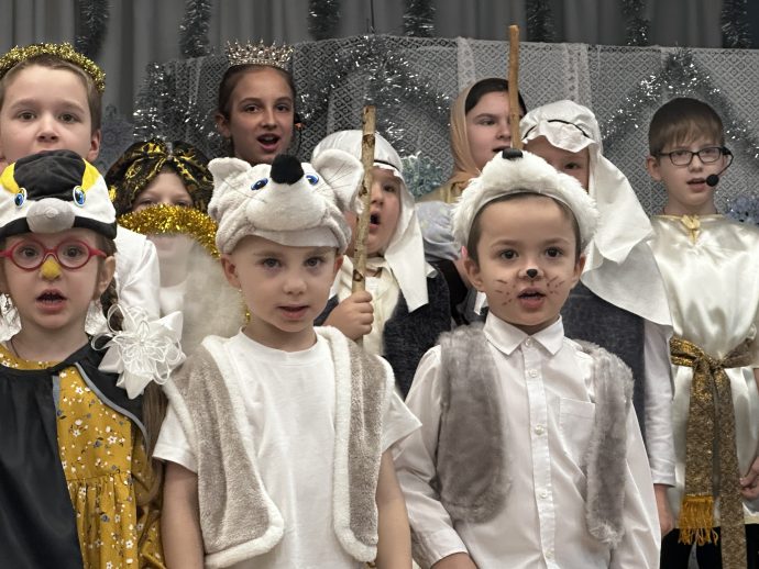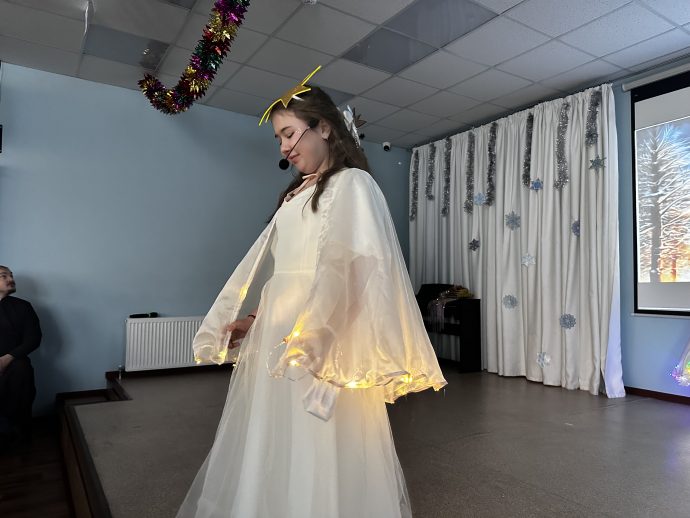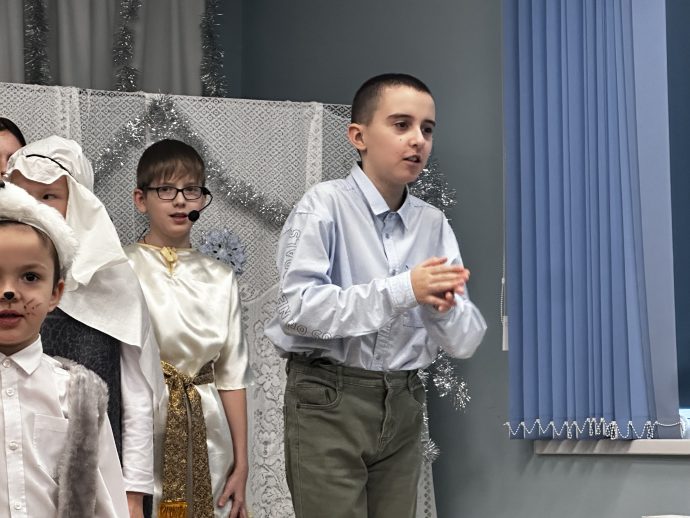 Далее воспитанники воскресной школы прочитали стихотворения и исполнили песнопения, посвящённые празднику Рождества Христова и прославляющие родившегося Спасителя мира. В продолжение зрителям показали спектакль, рассказывающий о том, как важно совершать добрые дела и через них прославлять Господа.