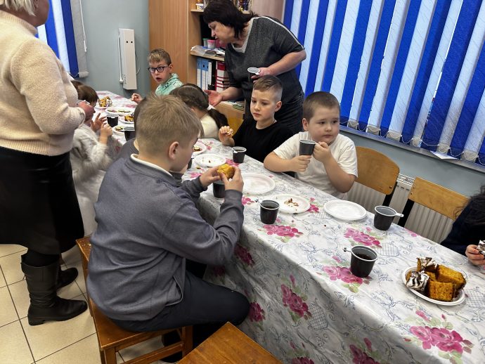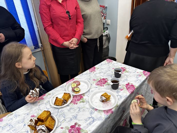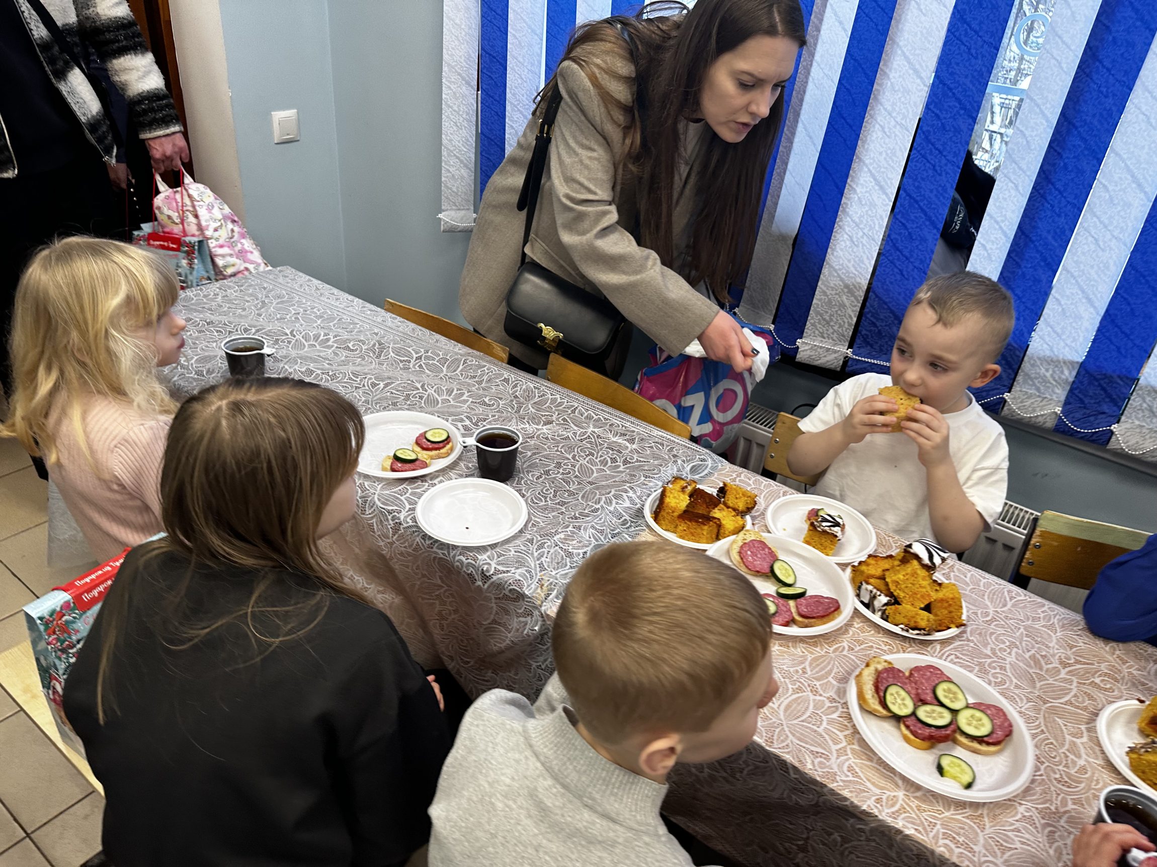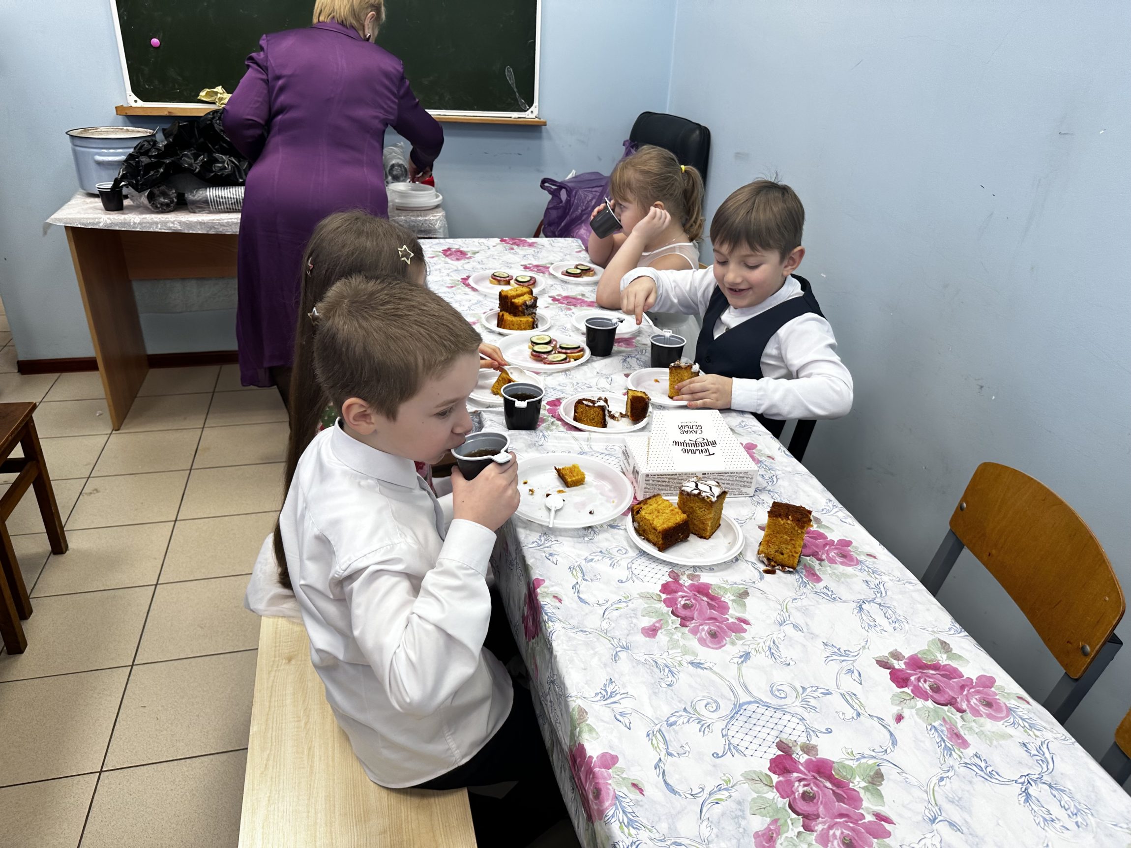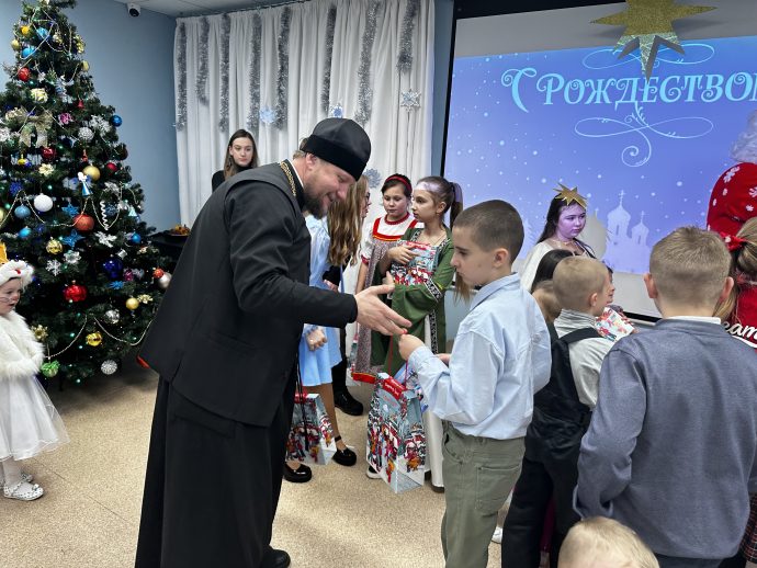 По завершение концерта всем детям были вручены сладкие рождественские подарки, после чего состоялось общее чаепитие.