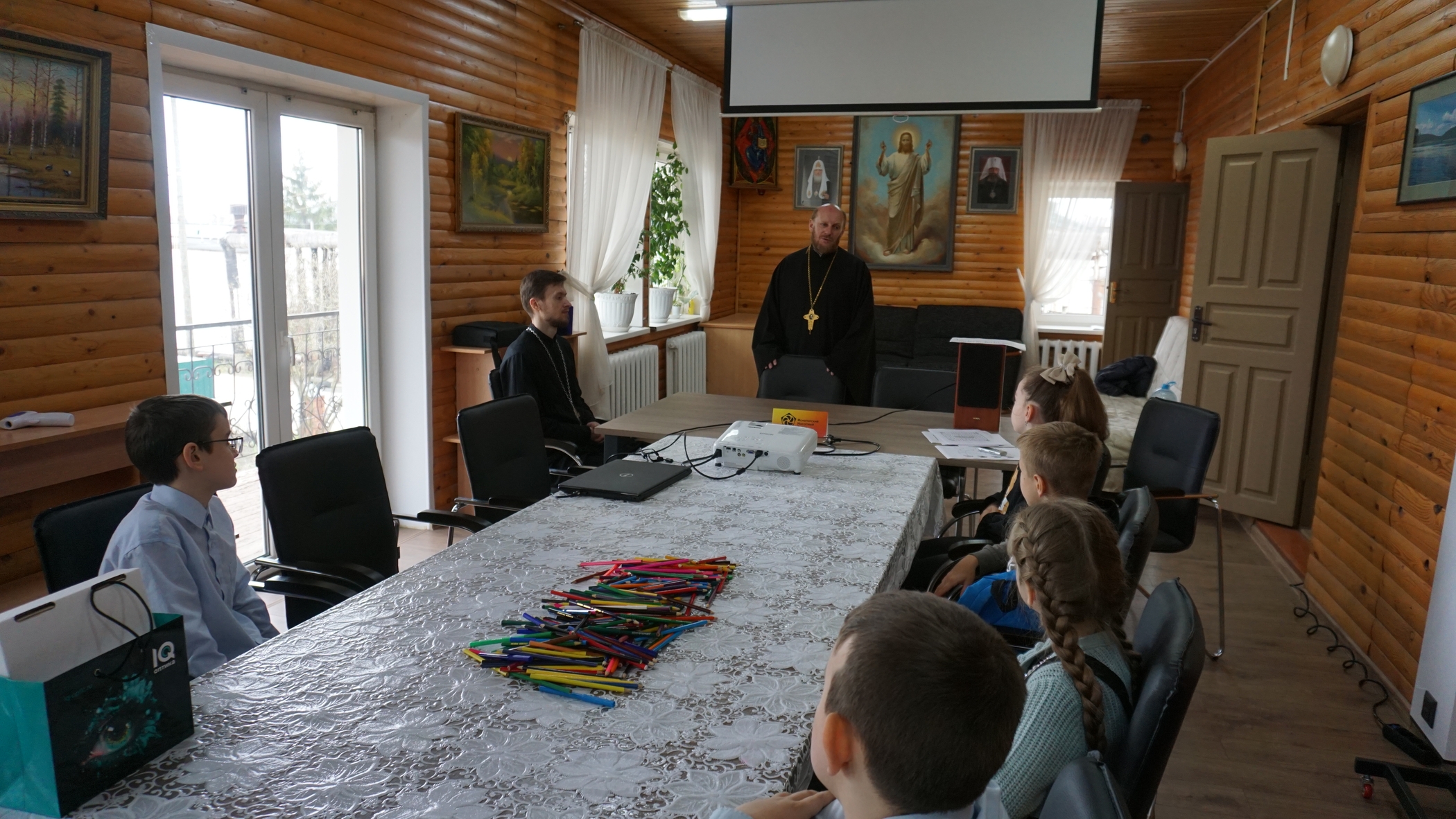 Во время чаепития ребята посмотрели мультфильм «Твой крест» – христианскую притчу режиссера Станислава Подивилова, снятый в 2007 году по благословению Патриарха Московского и всея Руси Алексия II.
