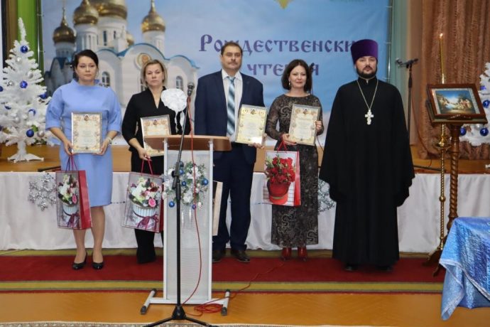Благочинный Ефремовского округа, настоятель Троицкого храма города Ефремова иерей Вячеслав Слепнев наградил педагогов архиерейской благодарностью митрополита Тульского и Ефремовского Алексия за усердные труды на благо Святой Матери Церкви: Татьяну Васютину, Ирину Зуеву, Михаила Чегринец, Ирину Шустову.