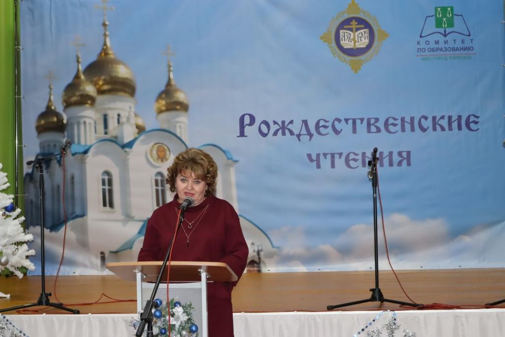 Затем собравшихся поприветствовала председатель комитета по образованию Елена Мельник: «Рождественские чтения – это добрая традиция, это консолидация усилий педагогической общественности и духовенства Ефремовского благочиния. Именно в таком сотрудничестве рождаются эффективные формы просветительской работы, позволяющие адекватно отвечать на вызовы современности в воспитании подрастающего поколения».
