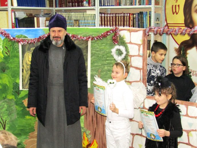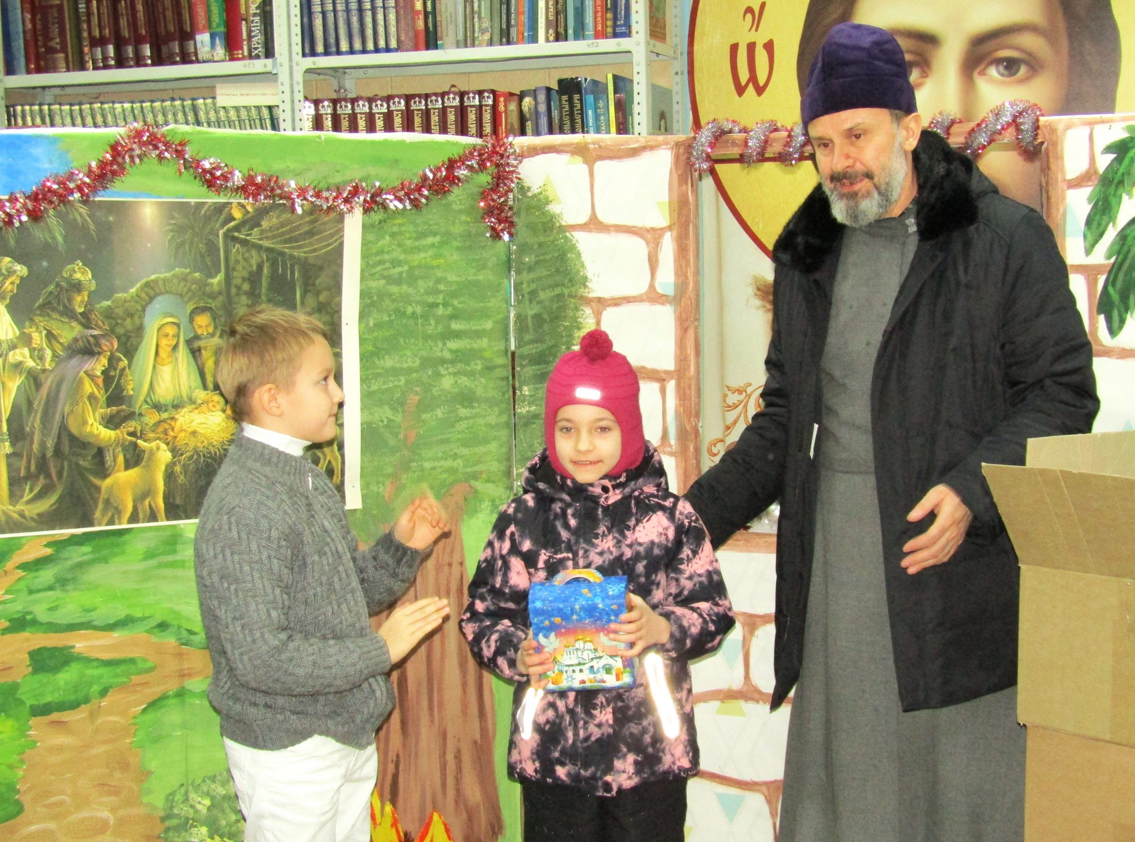 В завершение праздника дети прочитали рождественские стихотворения, и каждого батюшка одарил сладким гостинцем.