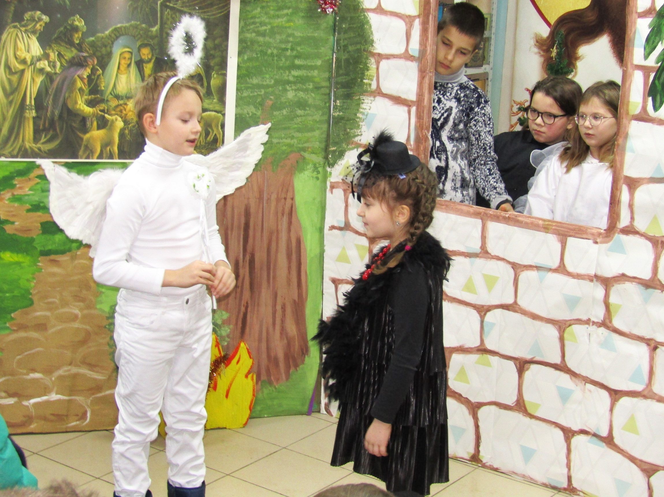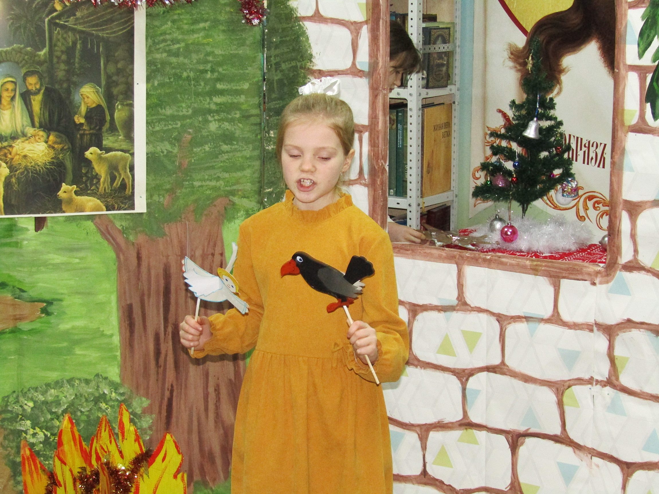 «В 2025 году мы приняли участие в международном конкурсе славянской культуры и поэзии, проходившем в Болгарии, в проекте «Наступает Рождество», – рассказала зрителям руководитель семейного клуба «Радуга», педагог с 45-летним стажем, почетный работник образования Людмила Александровна Ковтун. – В конце года мы узнали, что наши ребята стали победителями конкурса. Сейчас воспитанница клуба Василиса Лебедева покажет нам инсценировку «Ангел и Ворона» по одноименному стихотворению Ольги Мальцевой (Арзиани), которая была представлена на конкурсе в Болгарии».