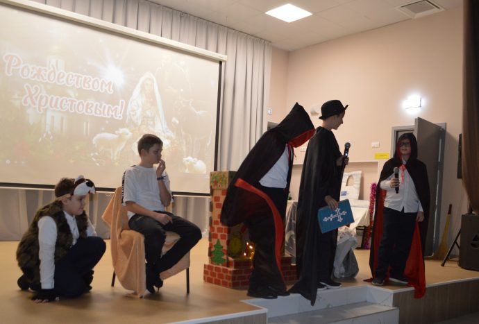 Рождественское представление дети и родители ждали с нетерпением и готовились к нему больше трех месяцев. За отведенное время ребята отрепетировали сказки, сюжетные сценки на тему праздника, а также подготовили колядки, русские народные танцы, песни и стихи.
