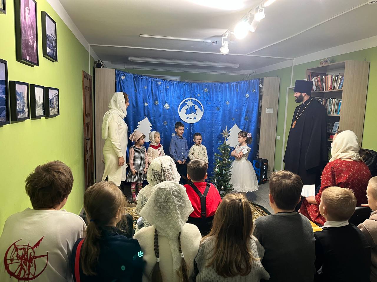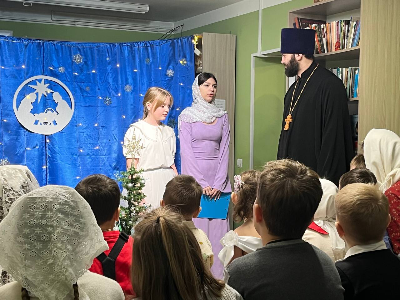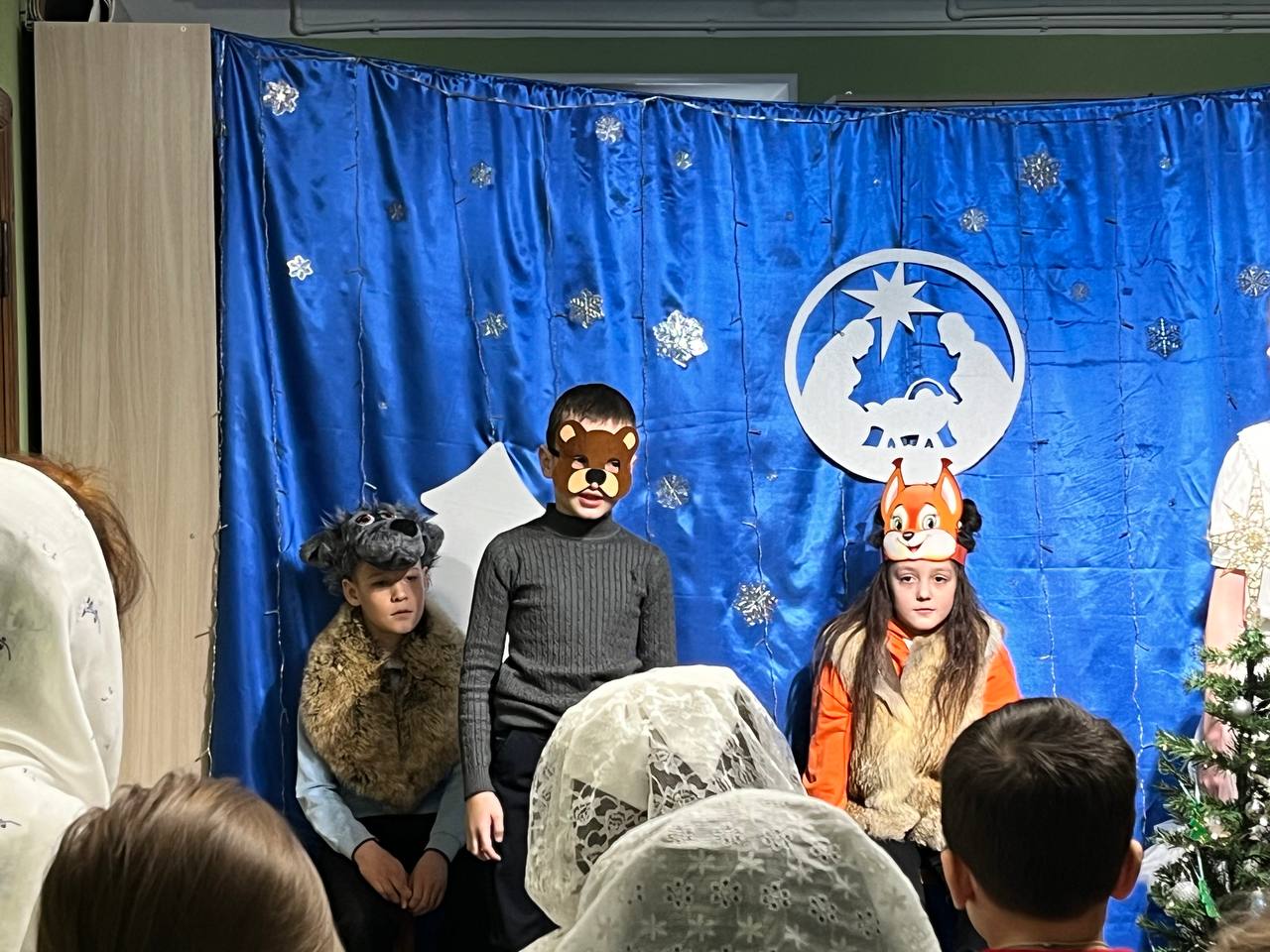 Дети прочитали стихотворения, посвящённые празднику, раскрывая смысл чудесного события рождения Спасителя. Одним из ярких моментов стало представление сценки, рассказывающей историю животных, узнавших о рождении Христа и решивших преподнести ему символический подарок — ёлку.