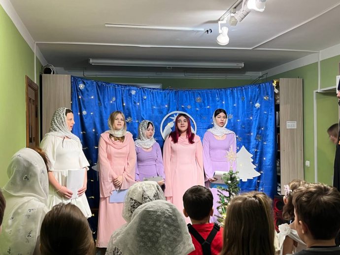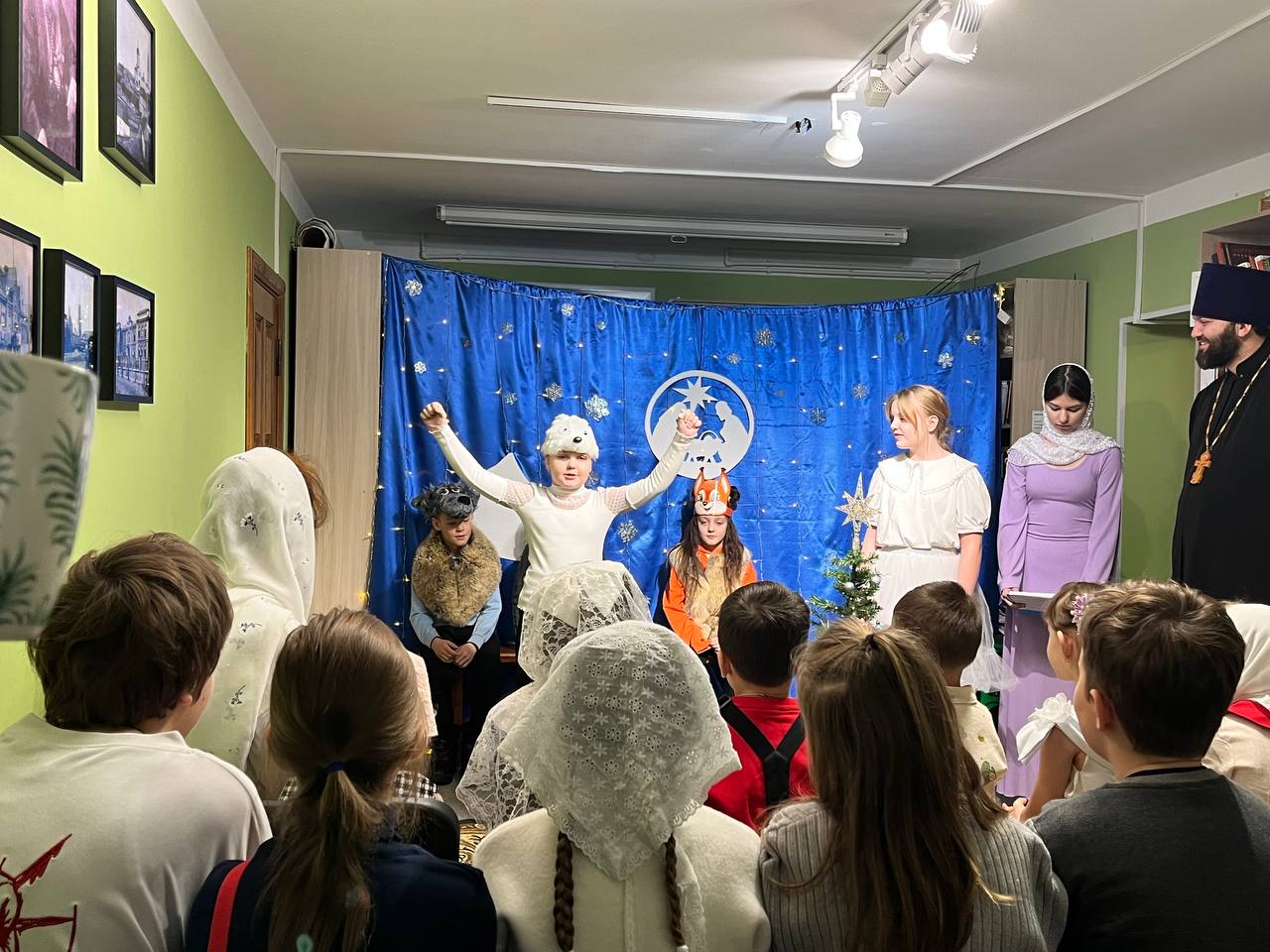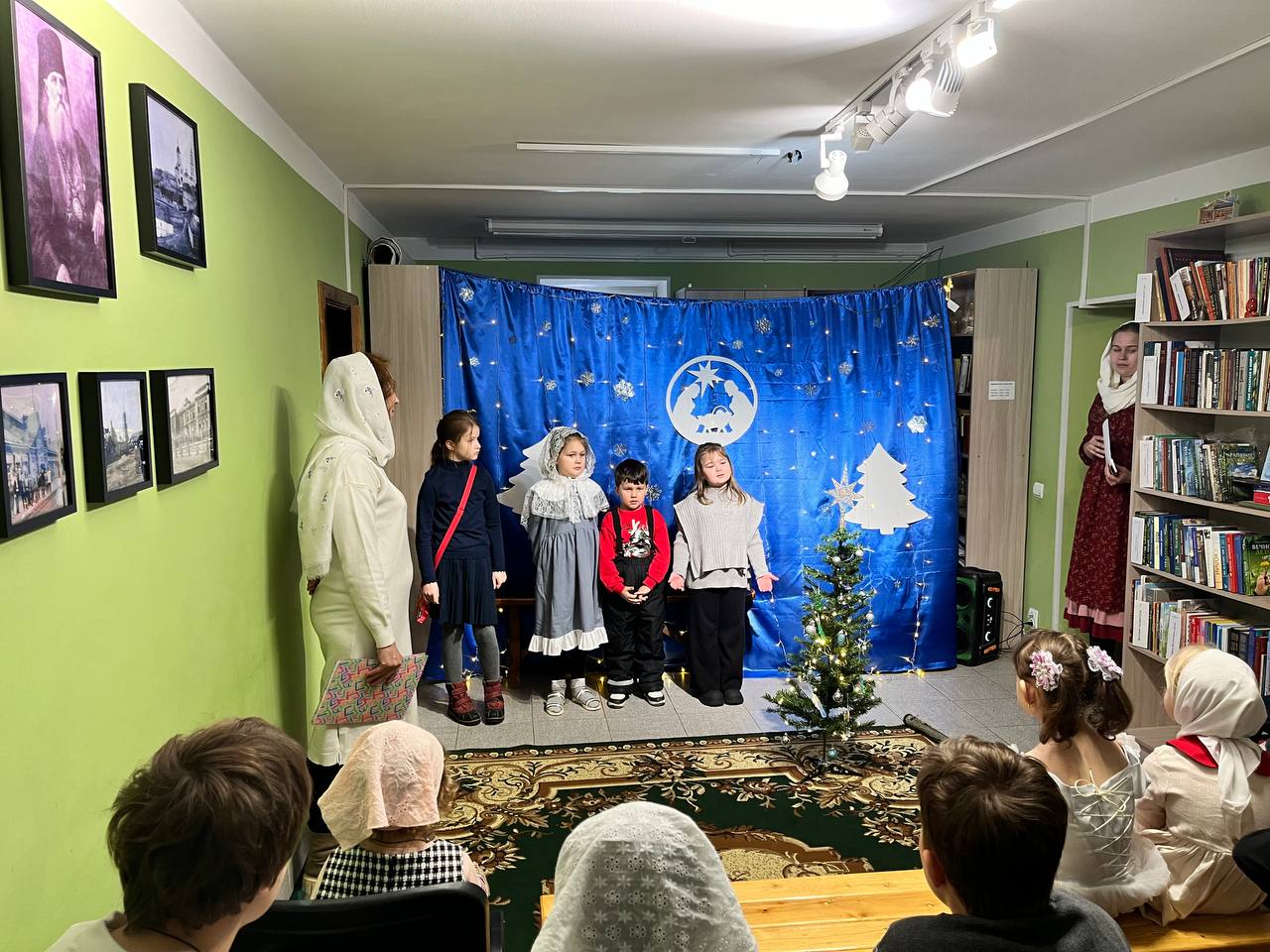 Дети прочитали стихотворения, посвящённые празднику, раскрывая смысл чудесного события рождения Спасителя. Одним из ярких моментов стало представление сценки, рассказывающей историю животных, узнавших о рождении Христа и решивших преподнести ему символический подарок — ёлку.