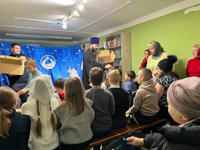 Затем каждому ребёнку вручили иконы Рождества Христова и сладкие подарки.