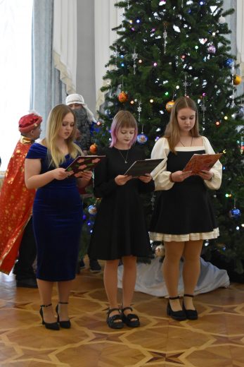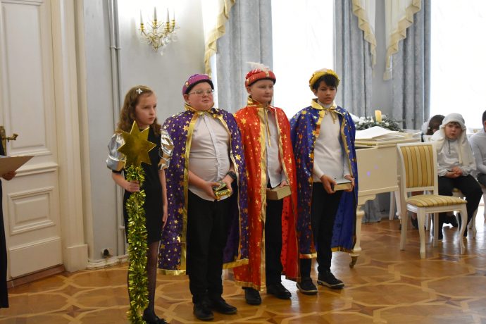 Юные артисты начали свое выступление с пения рождественского тропаря, после чего рассказали собравшимся события той удивительной ночи. Дети в стихах и песнопениях напомнили гостям о событиях Рождества Христова, прославляя Спасителя.