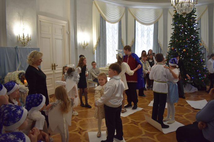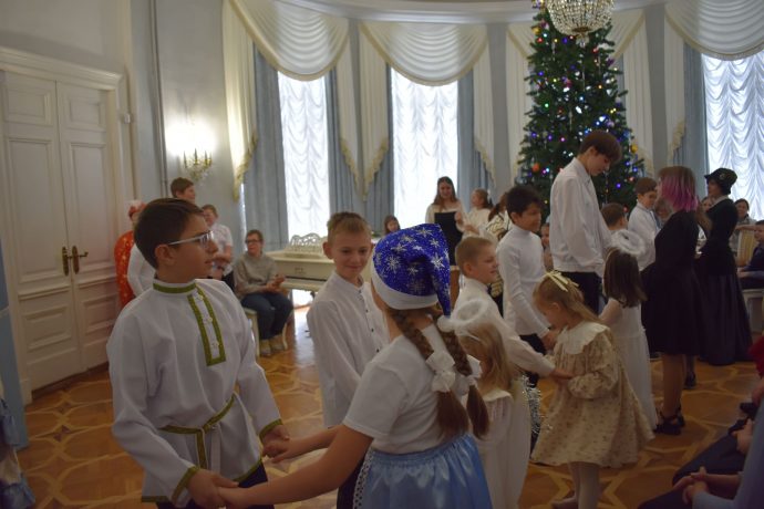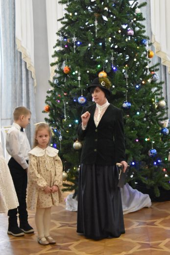 Сотрудники дворца-музея погрузили собравшихся в атмосферу XIX века. Сотрудница музея Юлия Чудакова в образе гувернантки графов Бобринских провела для детей урок старинных танцев, а также предложила ребятам поиграть в традиционные игры того времени.