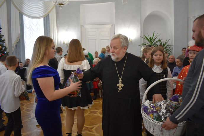 В завершение праздника отец Алексий выразил благодарность всем участникам представления и вручил детям сладкие подарки.