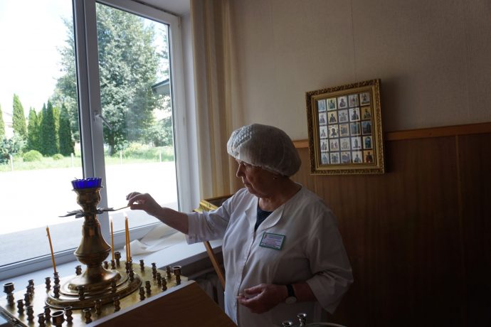Заведующая ВИЧ-лабораторией Ольга Савкина в беседе рассказала, что каждый год ездит в Иерусалим, бывает в храме Гроба Господня. Оттуда Ольга Ивановна привозила в подарок храму Вознесения свечи, опаленные Благодатным огнем.