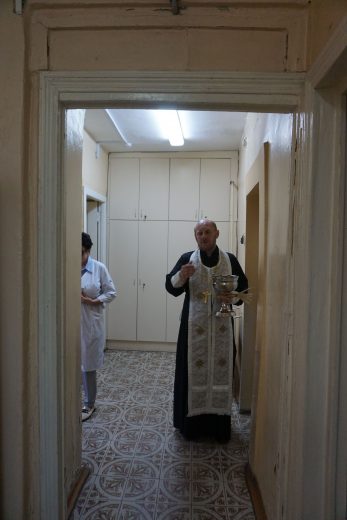 И сегодня мы помолимся ему и попросим, чтобы Господь даровал всем здесь стоящим здравие душевное и телесное – равно как и всем тем, за кого мы молимся, и кому вы служите в своем медицинском учреждении: больным, страждущим.