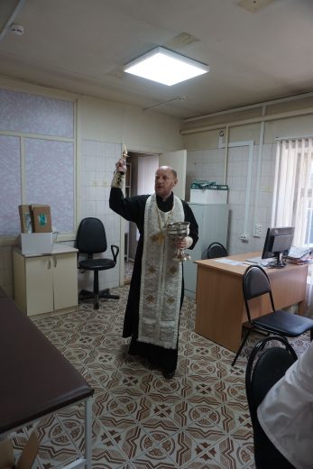 После молебна протоиерей Павел Картушин освятил отремонтированные недавно клиническую лабораторию и ВИЧ-лабораторию при ГУЗ “Тульский областной центр по профилактике и борьбе со СПИД и инфекционными заболеваниями”.