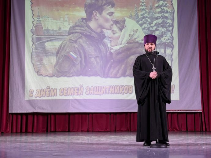 С приветственным словом к собравшимся обратился благочинный Ефремовского округа и настоятель Троицкого храма иерей Вячеслав Слепнев: «Мы собрались здесь, чтобы выразить не просто уважение, а глубочайшую благодарность всем, кто посвятил себя защите нашей Родины, и их родным, чья поддержка и любовь являются той незыблемой опорой, которая позволяет нашим героям выполнять свой долг с честью».