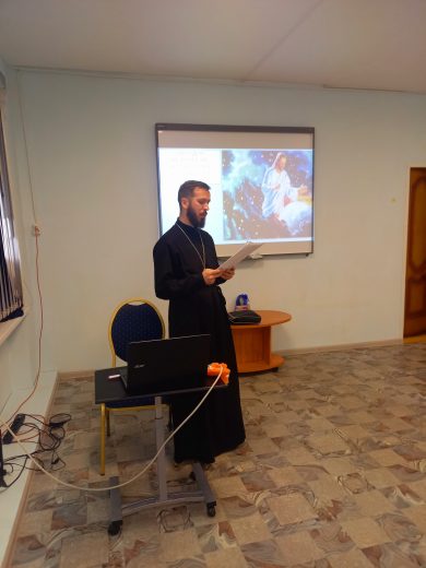 Отец Димитрий говорил о важности выбора между сиюминутным удовольствием и вечными ценностями, о том, как легко поддаться соблазну и потерять нравственные ориентиры в жизни. В подтверждение своих слов священник приводил много примеров из житий святых, которые, несмотря на все испытания, оставались верны Божиим заповедям. Отец Димитрий подготовил презентацию по теме беседы.