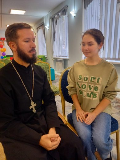 Батюшка призвал ребят искать вдохновение не только в материальном мире, но и в красоте природы, в искусстве, в спорте, в общении с близкими. Иерей Дмитрий Козенко подчеркнул, что истинное счастье человека заключается не в накоплении богатств, а в умении делиться, сострадать и помогать тем, кто нуждается. Он напомнил воспитанникам центра, что каждый из нас несет ответственность не только за свою жизнь, но и за мир вокруг.