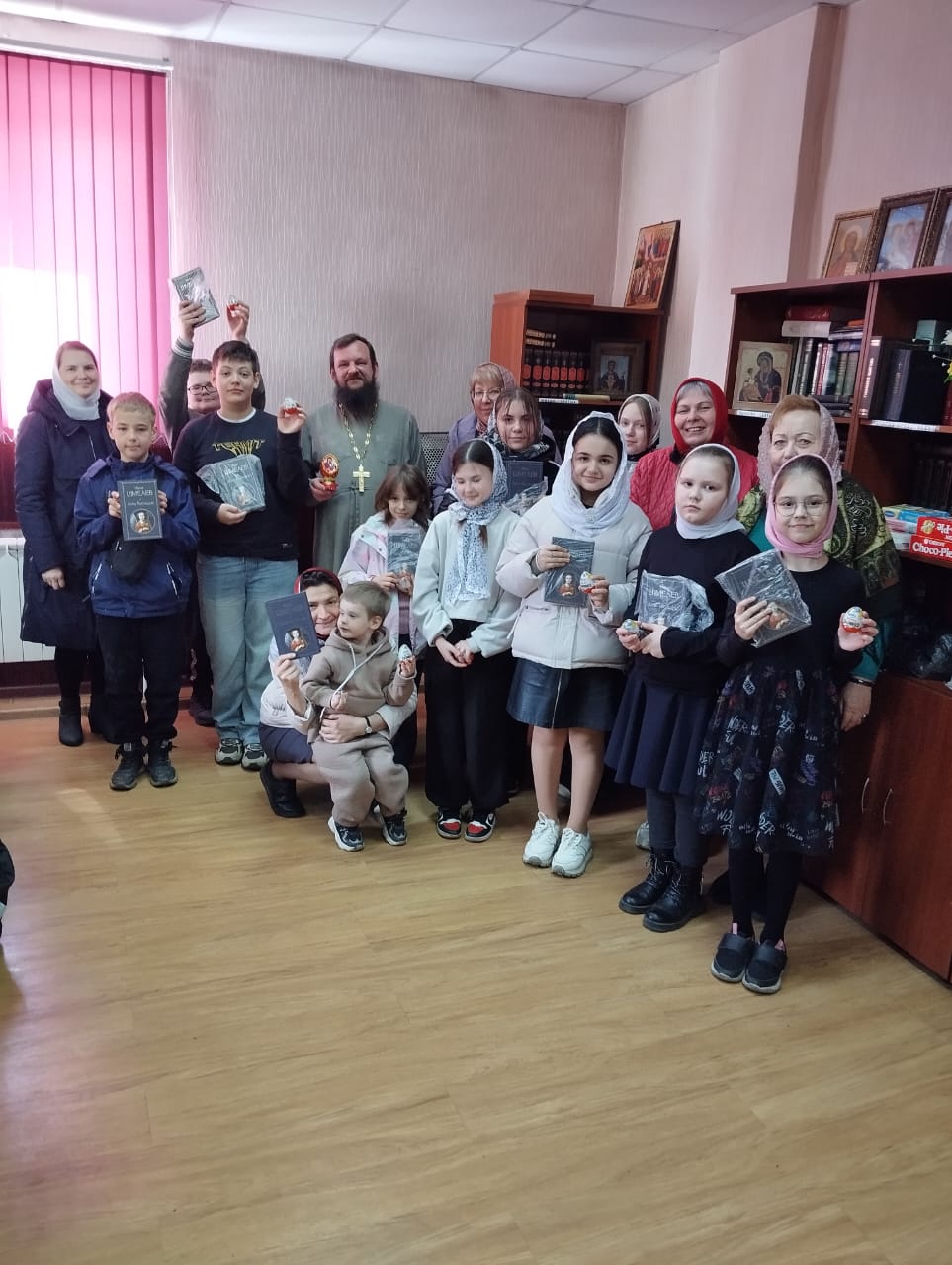 Воскресная школа объединяет ребят из нескольких православных семей города. Дети с удовольствием проводят выходной день в храме, потому что там их ждет общение со сверстниками, близкими по духу, и живое мудрое слово священника.