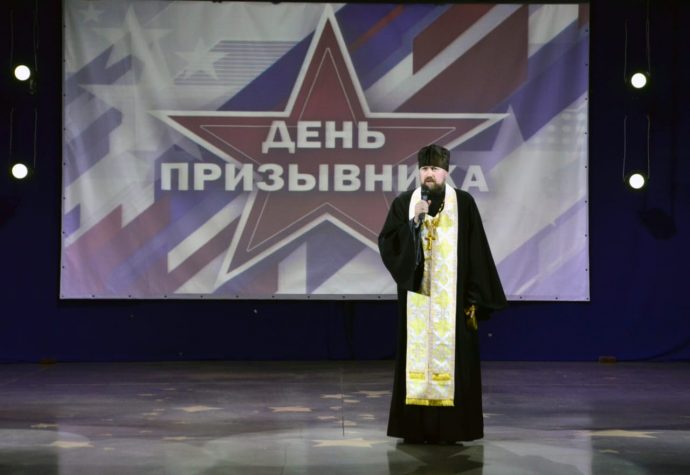 На мероприятие был приглашен помощник благочинного Ефремовского округа по информационной работе, настоятель храма святого великомученика Димитрия Солунского села Пожилино иерей Николай Авдуловский. В своем слове он напутствовал призывников: «Вы в скором времени отправитесь проходить военную службу. Служите достойно, поступайте по совести, проявляйте любовь и уважение ко всем. Желаю вам помощи Божией и крепости духа!»
