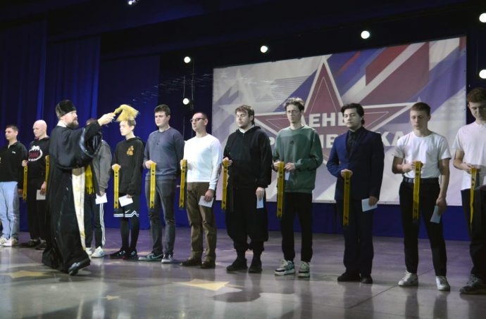 Отец Николай вручил будущим военнослужащим живые помощи, благословил ребят и окропил их святой водой.
