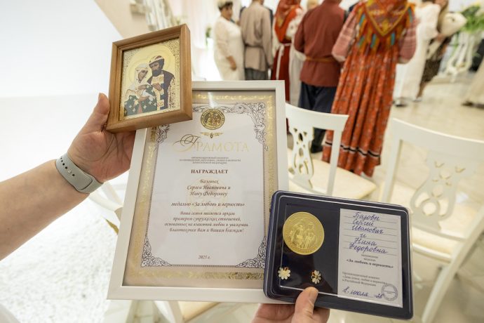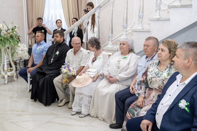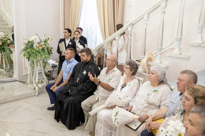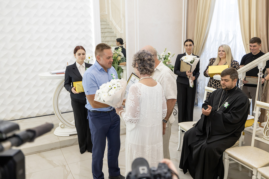 На чествование были приглашены юбиляры – семейные пары, отметившие 50, 45 и 25 лет совместной жизни, глава МО город Новомосковск Алексей Платонов, глава администрации МО город Новомосковск Руслан Бутов, клирик храма «Нечаянная Радость» иерей Ярослав Бреднев.