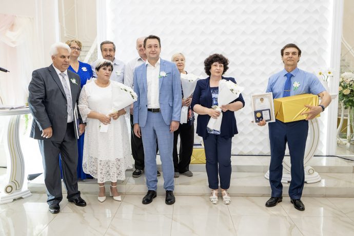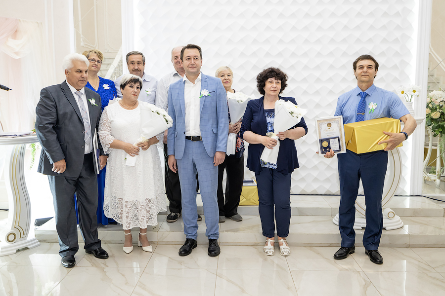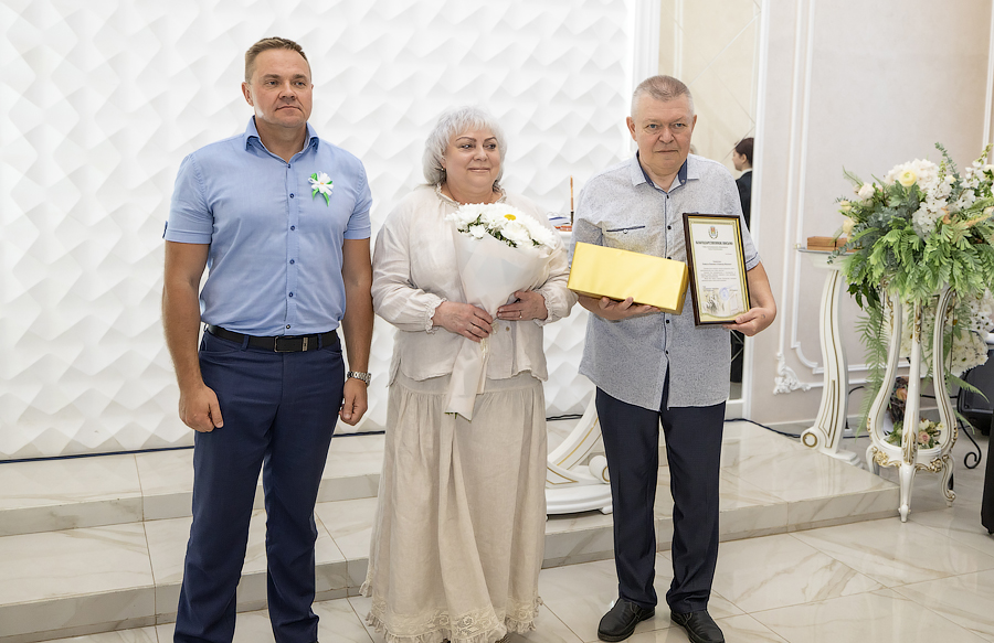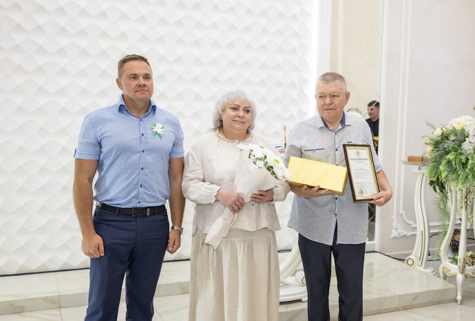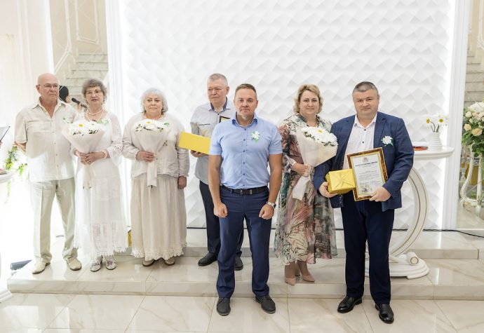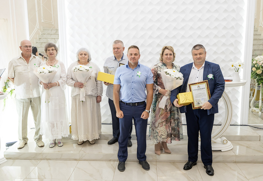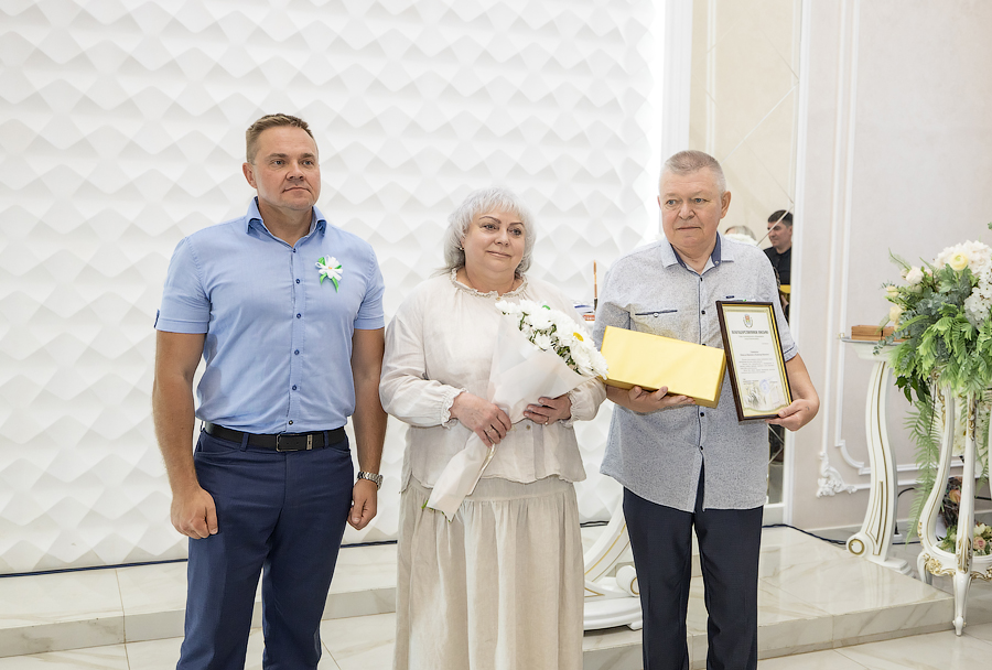 Глава администрации Новомосковска Руслан Бутов отметил, что семья учит нас быть терпимыми, сострадательными и ответственными. Здесь мы познаем первые уроки любви, дружбы и взаимопомощи. Без нее у страны нет будущего. Администрация города уделяет большое внимание институту семьи, ведь она это фундамент, на котором строится наша жизнь. Это источник силы и вдохновения, который помогает нам двигаться вперед, несмотря на все препятствия. И пример тому пары-юбиляры. «Мы гордимся нашими семьями, которые прожили вместе много лет и сохранили любовь, пронесли ее через годы. Для молодых семей, которые только создаются, вы – пример, на который надо равняться», – подчеркнул Руслан Владимирович. Глава администрации вручил памятные медали «За любовь и верность», грамоты оргкомитета по проведению Дня семьи, любви и верности в РФ и памятные подарки.