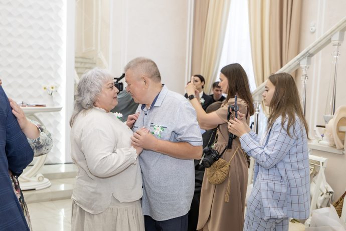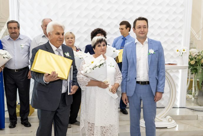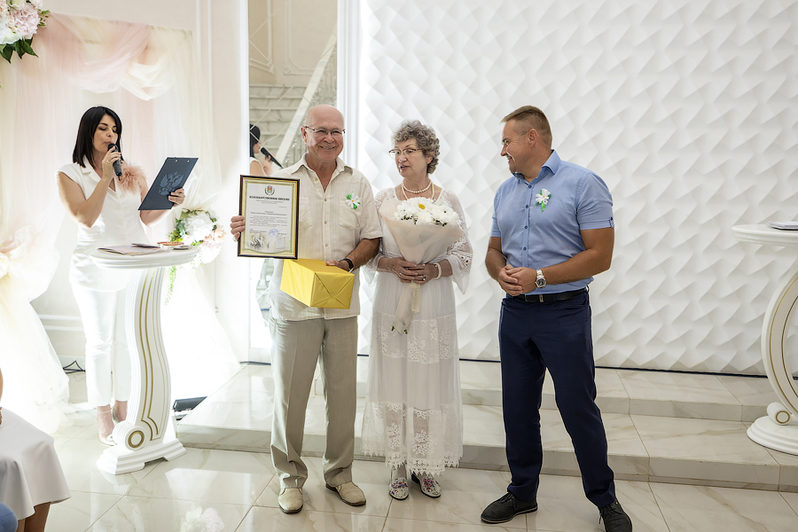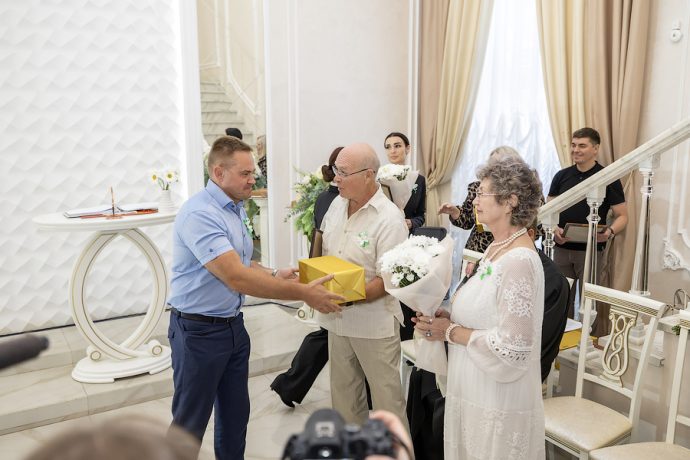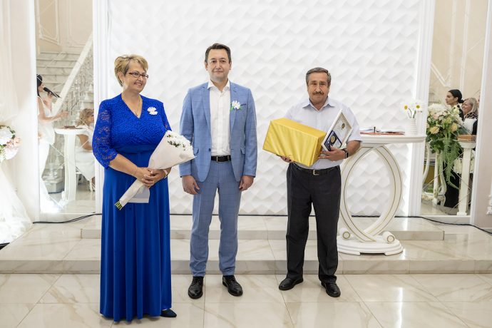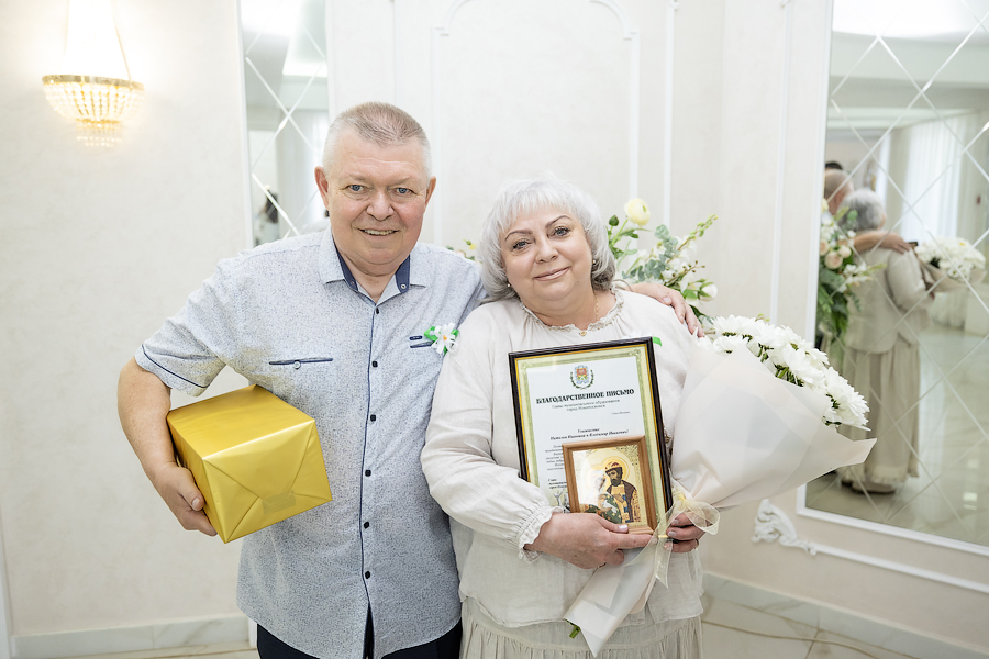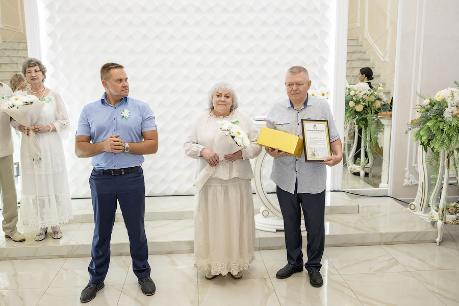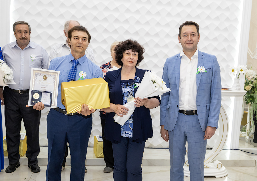 Глава администрации Новомосковска Руслан Бутов отметил, что семья учит нас быть терпимыми, сострадательными и ответственными. Здесь мы познаем первые уроки любви, дружбы и взаимопомощи. Без нее у страны нет будущего. Администрация города уделяет большое внимание институту семьи, ведь она это фундамент, на котором строится наша жизнь. Это источник силы и вдохновения, который помогает нам двигаться вперед, несмотря на все препятствия. И пример тому пары-юбиляры. «Мы гордимся нашими семьями, которые прожили вместе много лет и сохранили любовь, пронесли ее через годы. Для молодых семей, которые только создаются, вы – пример, на который надо равняться», – подчеркнул Руслан Владимирович. Глава администрации вручил памятные медали «За любовь и верность», грамоты оргкомитета по проведению Дня семьи, любви и верности в РФ и памятные подарки.