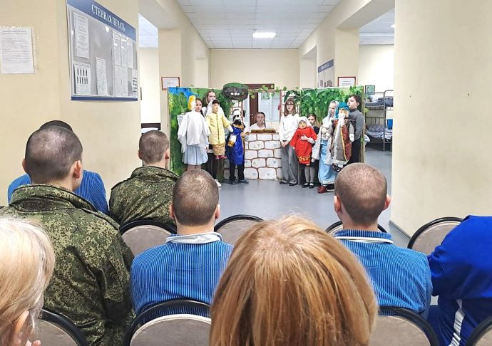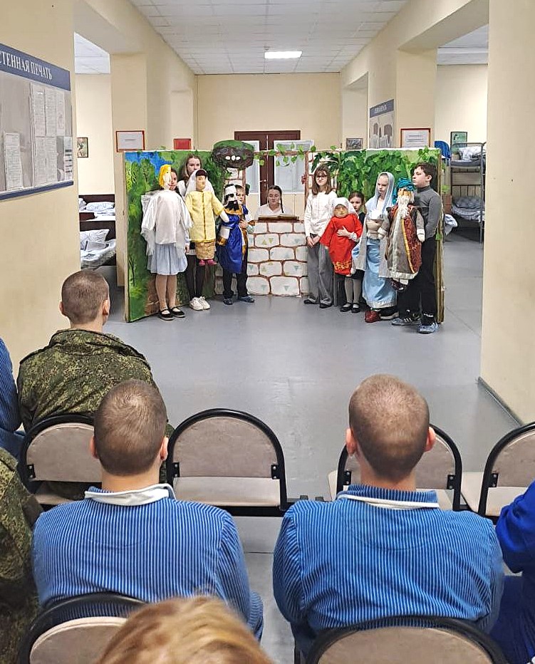 Перед началом спектакля с теплыми словами к бойцам обратился клирик Алексиевского храма иерей Вадим Себякин, представив юных артистов и их трогательную постановку.