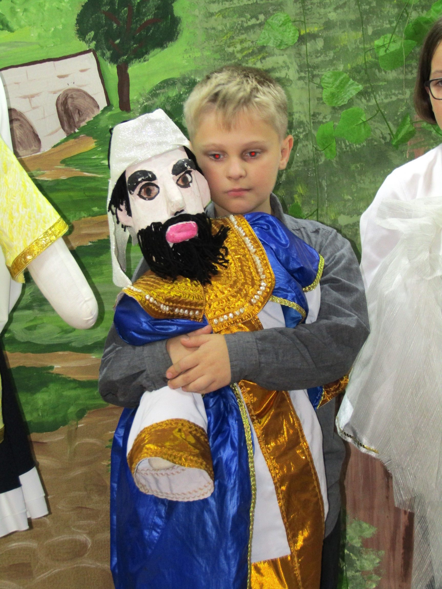 В этом спектакле мы рассказываем о том, что сначала у Иоакима и Анны не было детей и люди над ними смеялись, а они из-за этого горько плакали, хотя они не грешили. Эти боль и несправедливость, пережитые святыми, делают их историю еще более трогательной и понятной».