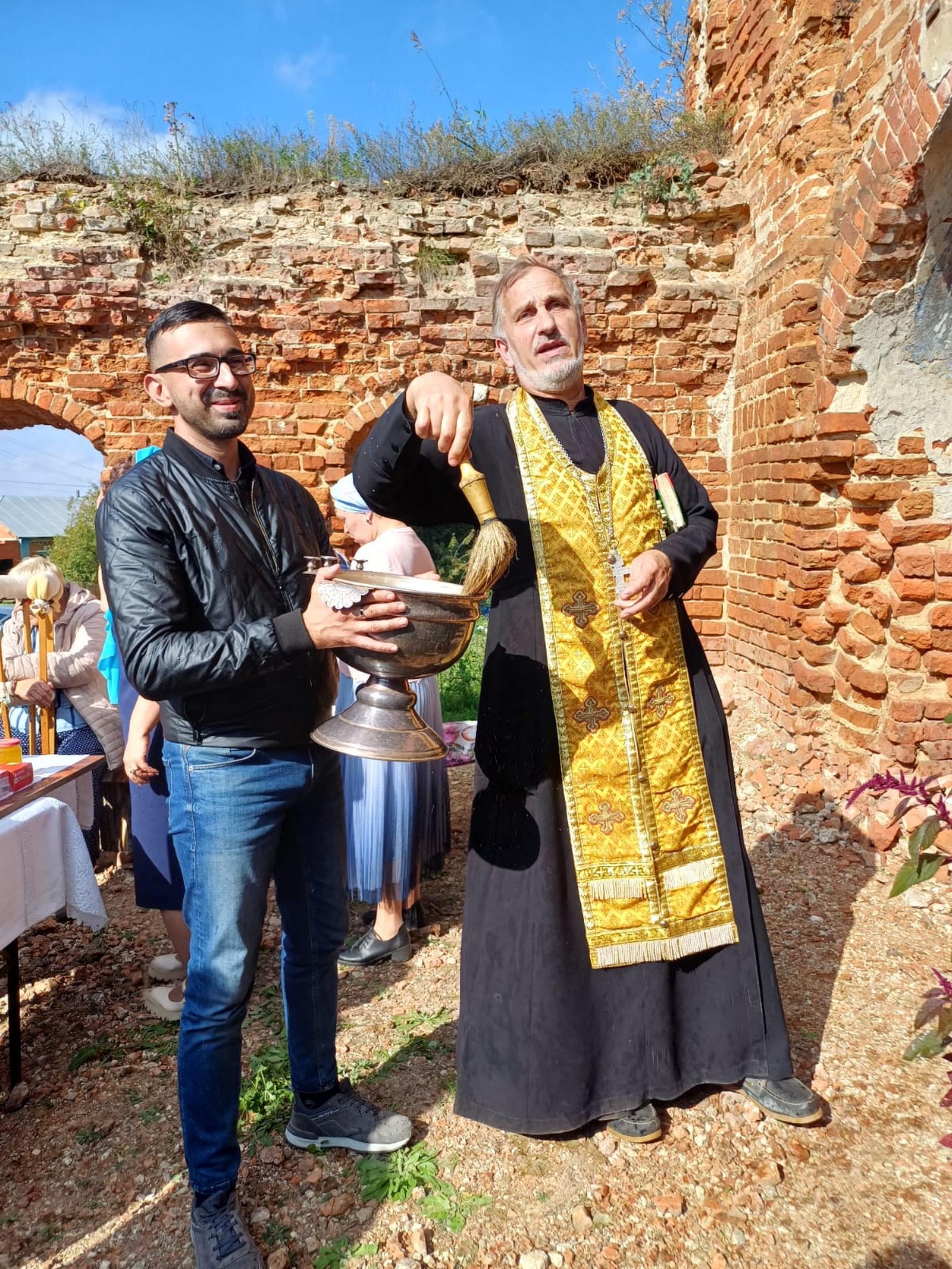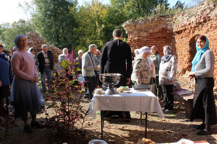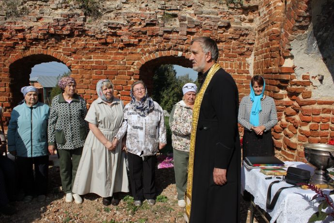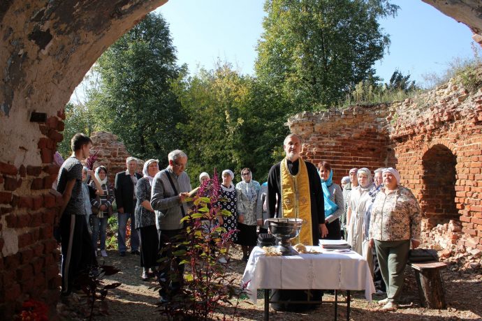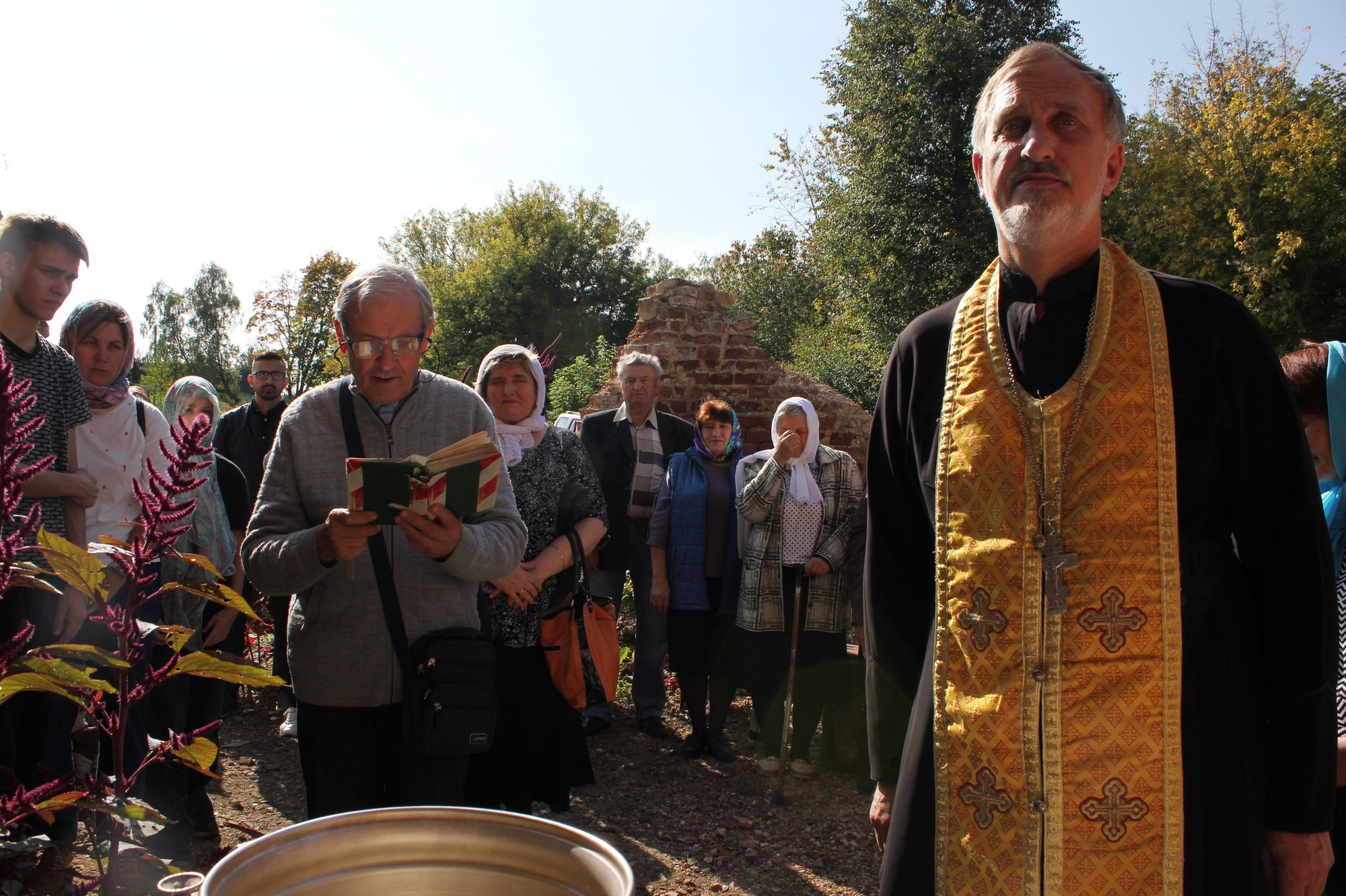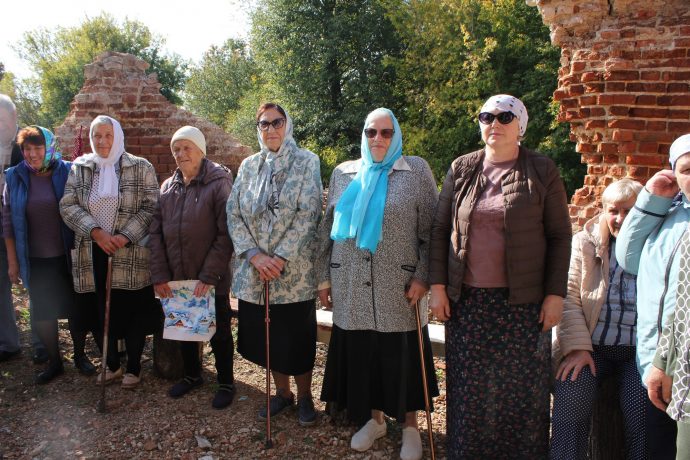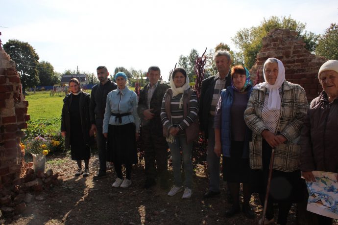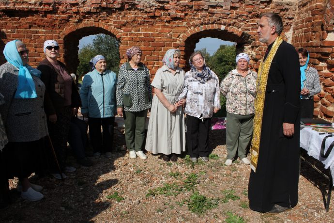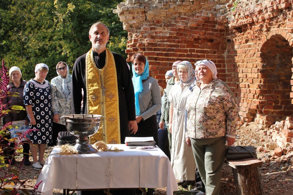По окончании праздничного богослужения батюшка и певчие посетили Новое Село, где находится руинированный Успенский храм. Построенный в середине 18 века, он был закрыт не позднее 1930-х годов и приспособлен местными властями под хозяйственные нужды. В начале 2000-х годов был заброшен окончательно, в это время рухнула главка храма.