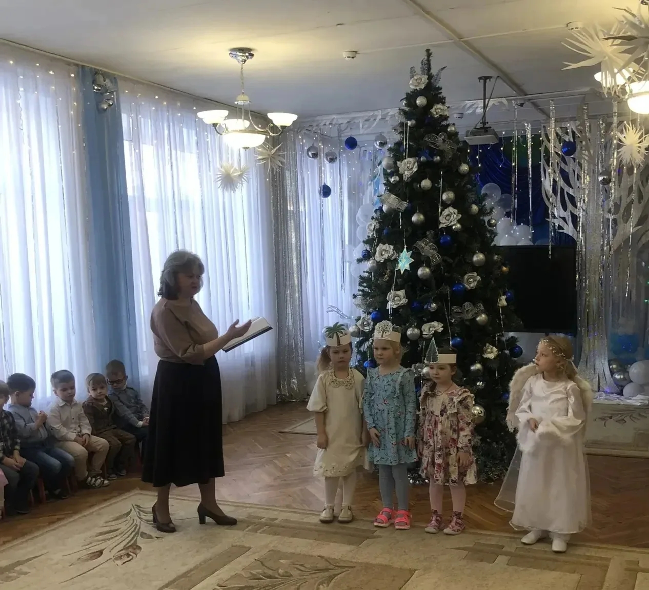 Дети из средних и старших групп детского сада поддержали младших и приняли участие в рождественском концерте.