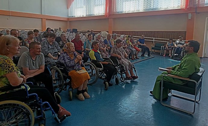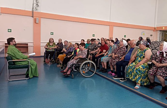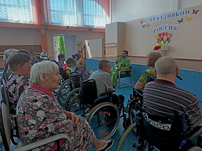 В день Святого Духа настоятель храма в честь иконы Божией Матери «Живоносный Источник» села Левинка протоиерей Сергий Семочкин посетил Товарковский дом-интернат для престарелых и инвалидов.